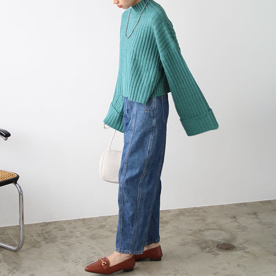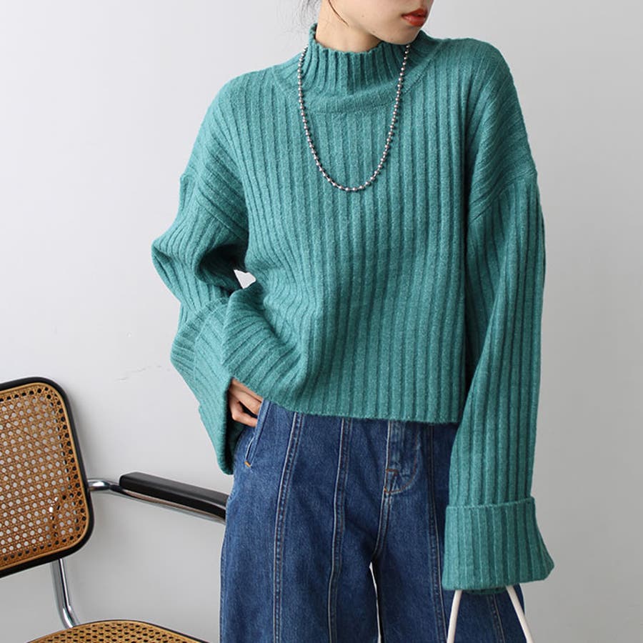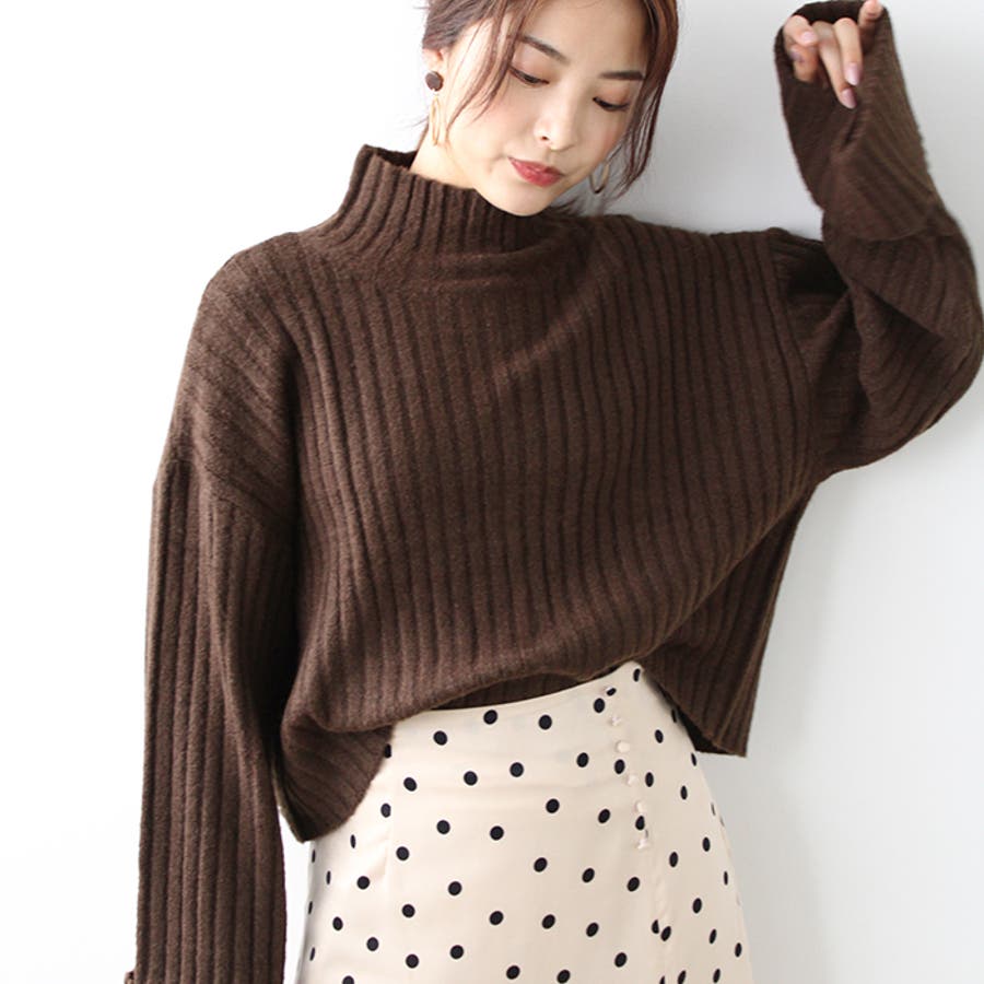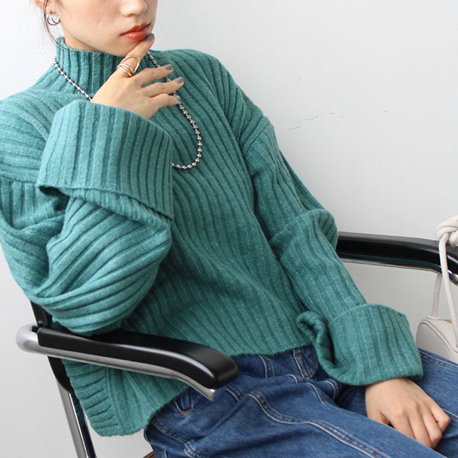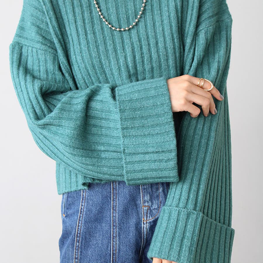 ワイドスリーブショート丈リブニット