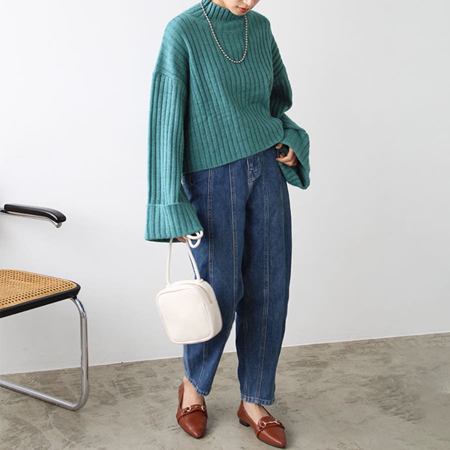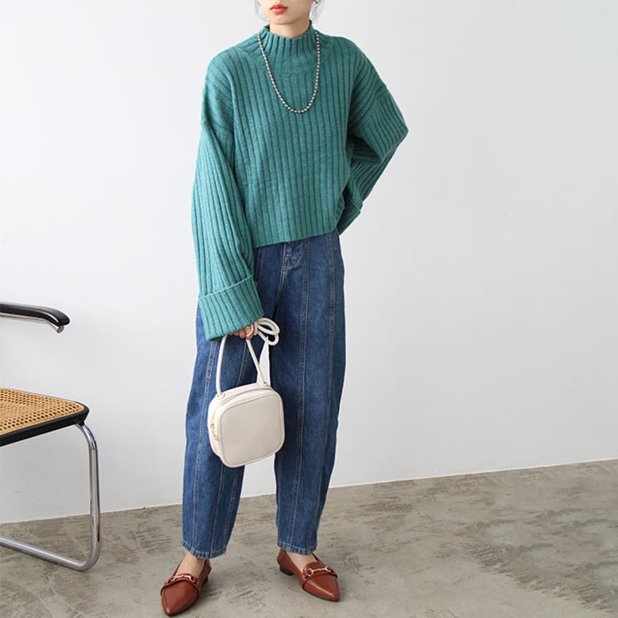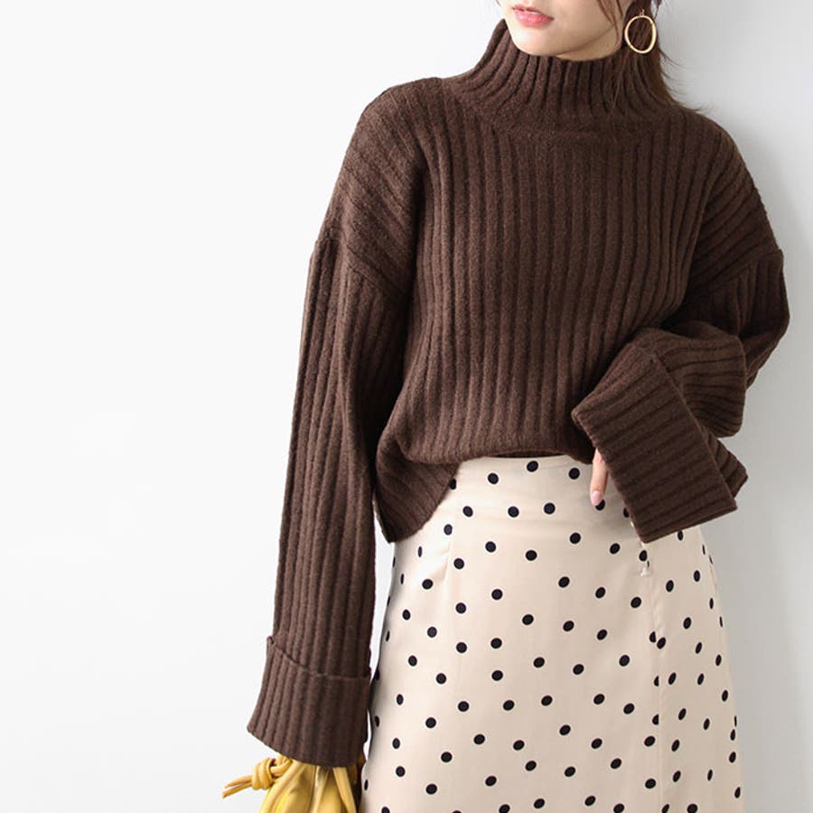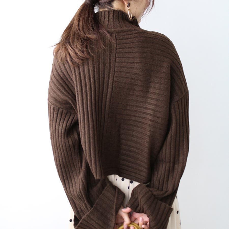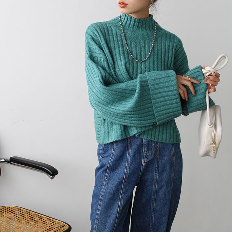 ワイドスリーブショート丈リブニット