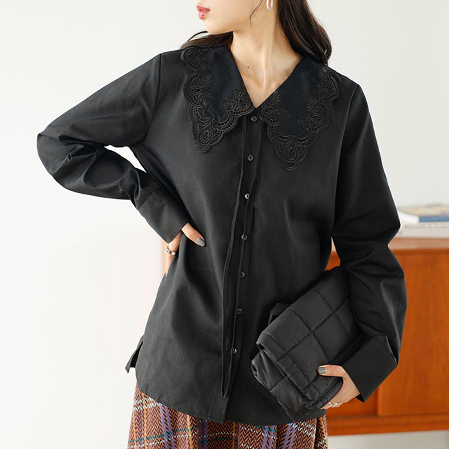 レース刺しゅう衿ブラウス