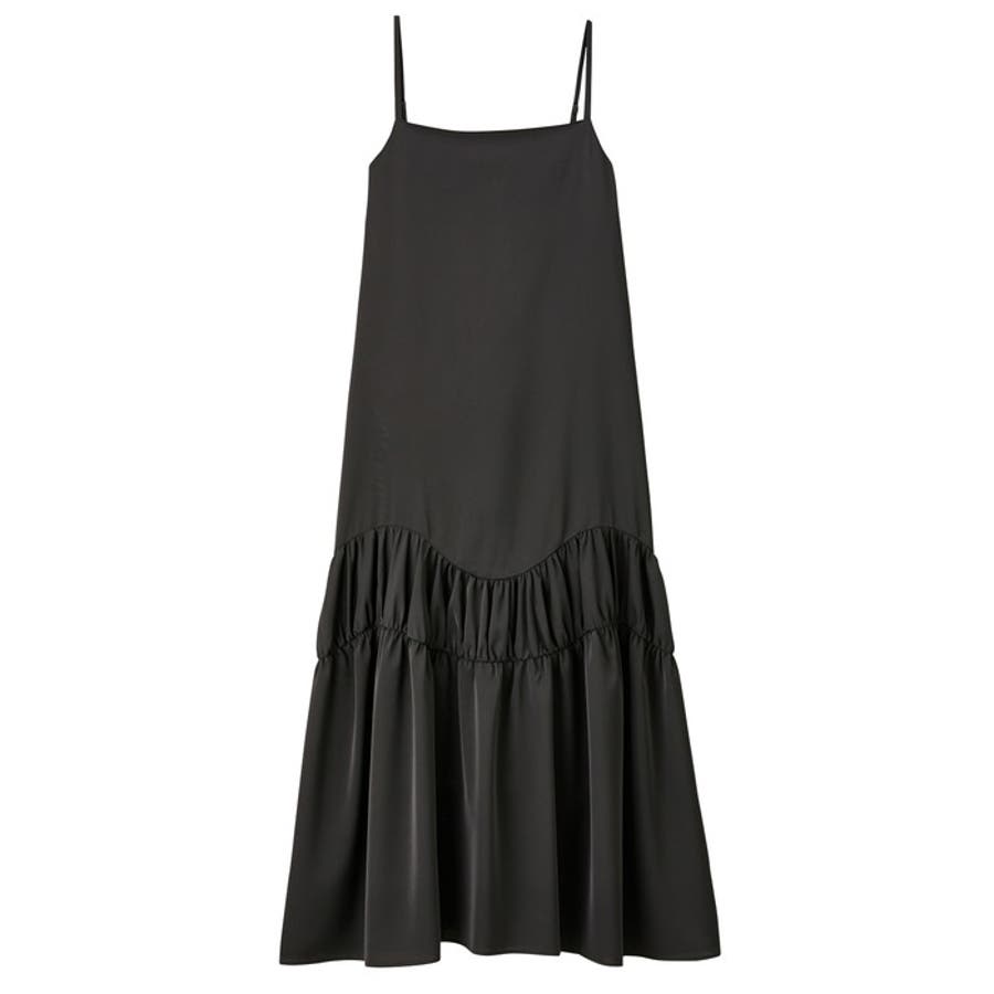ギャザー切替フレアーキャミワンピース