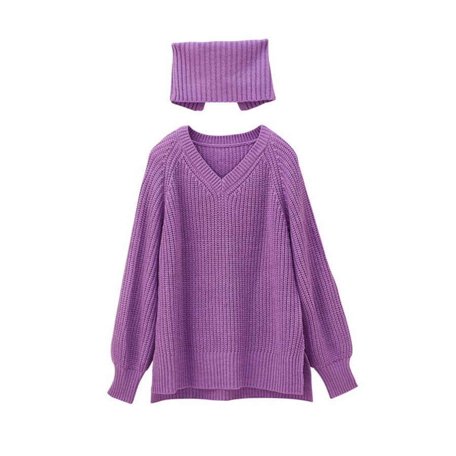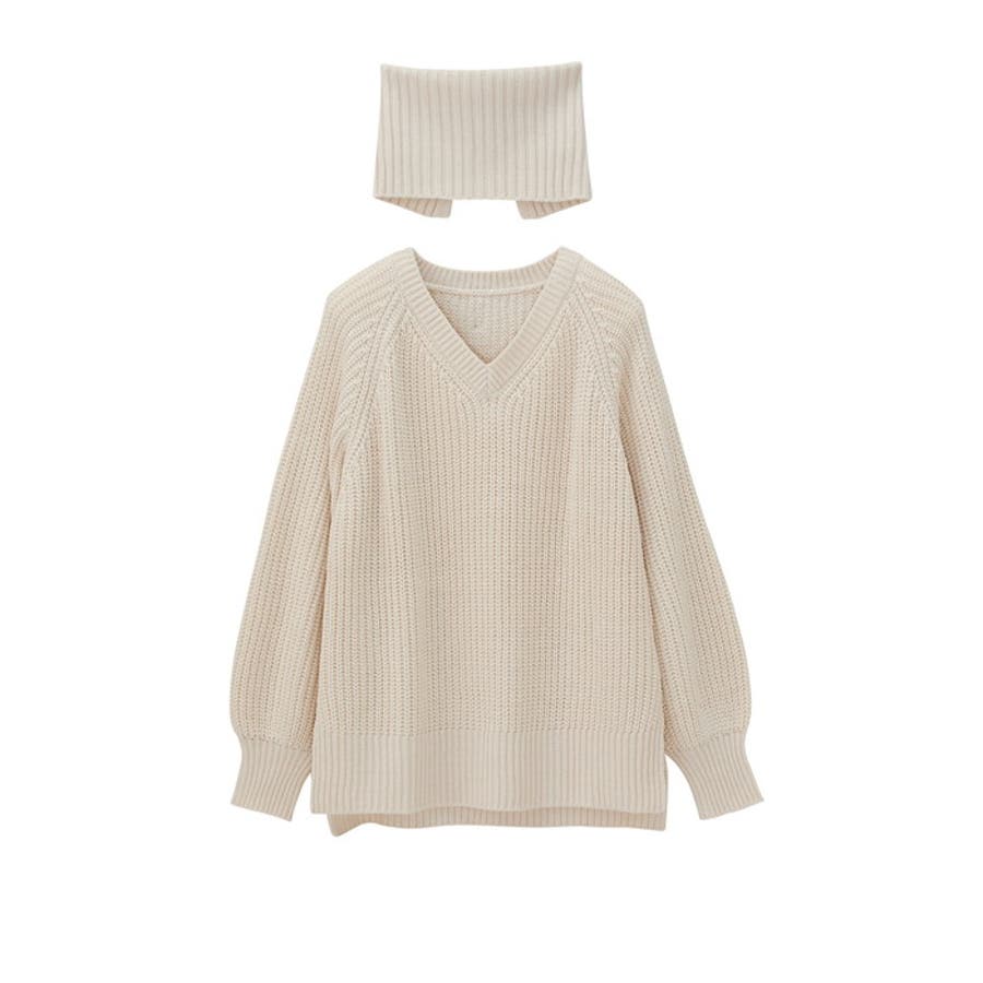 ネックウォーマー付ニット