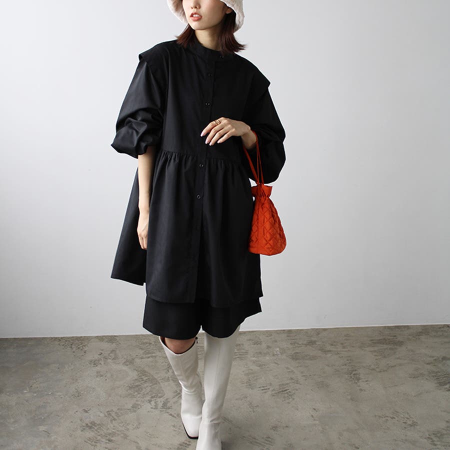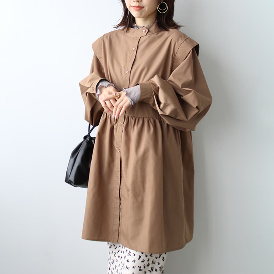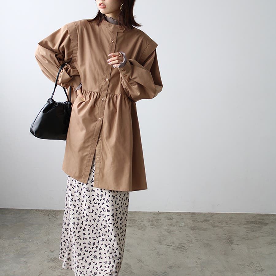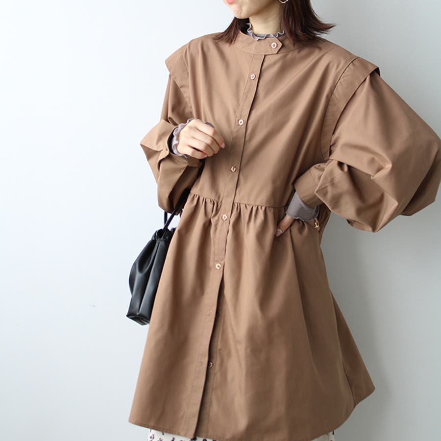 ボリュームスリーブ&肩の切り替えデザインが着映えるブラウス。
