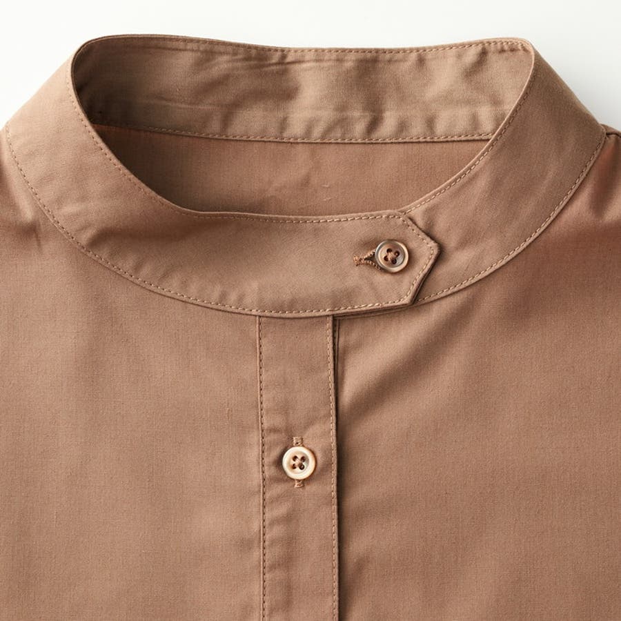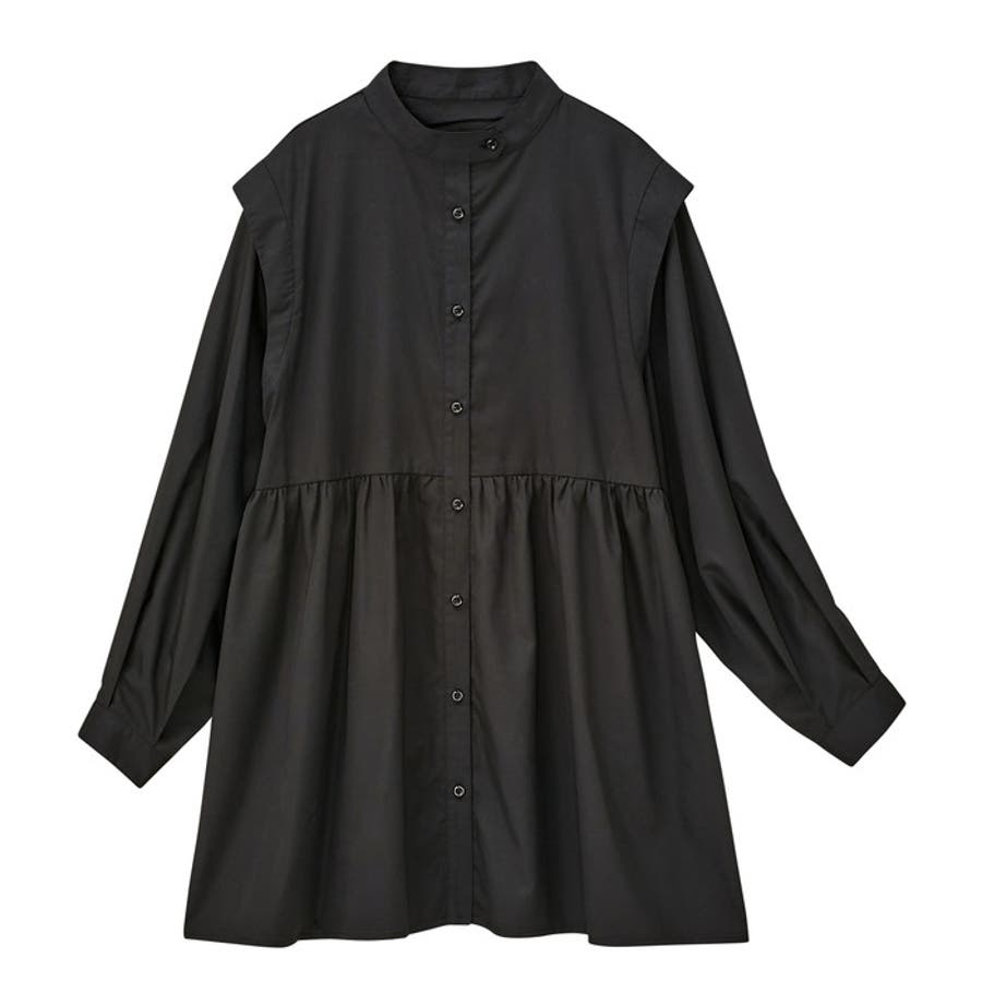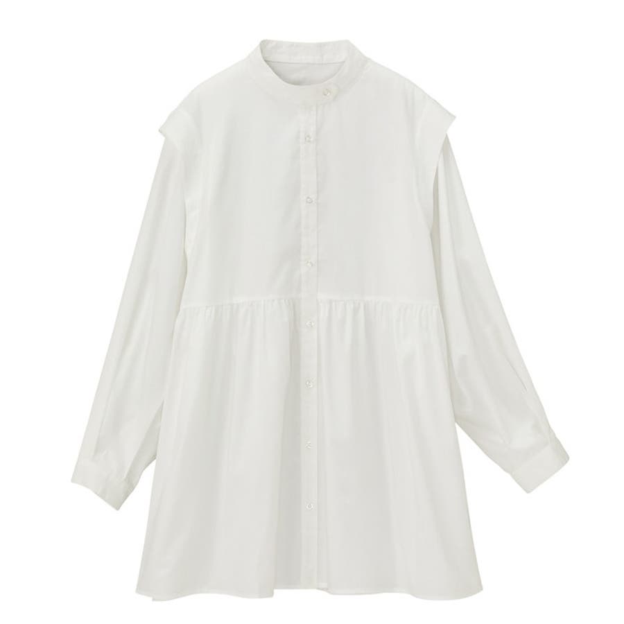 少し大きめですが、長さがちょうど良くスッキリ見えする形です。そしてアイロンがけが面倒な人にはぴったりな、あまりシワのつかない生地でお気に入りです。