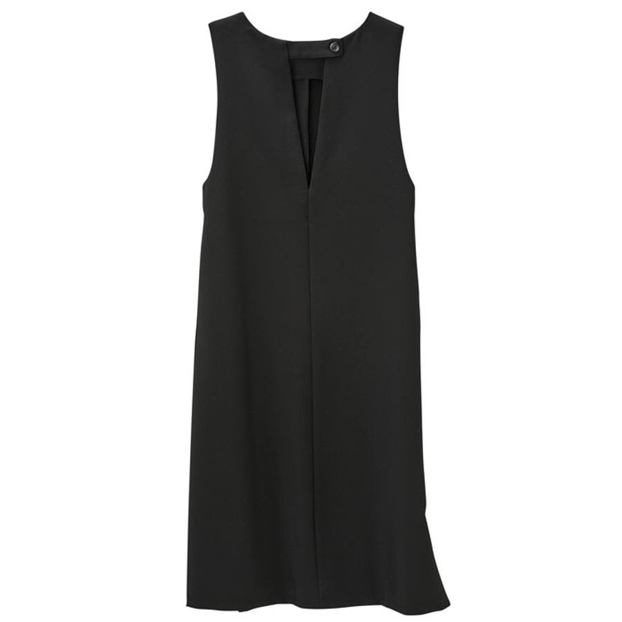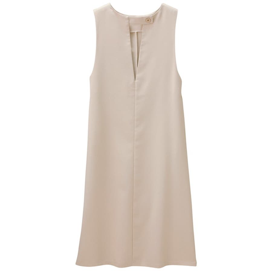 程よい深さのVネックが大人っぽいジャンパースカート。