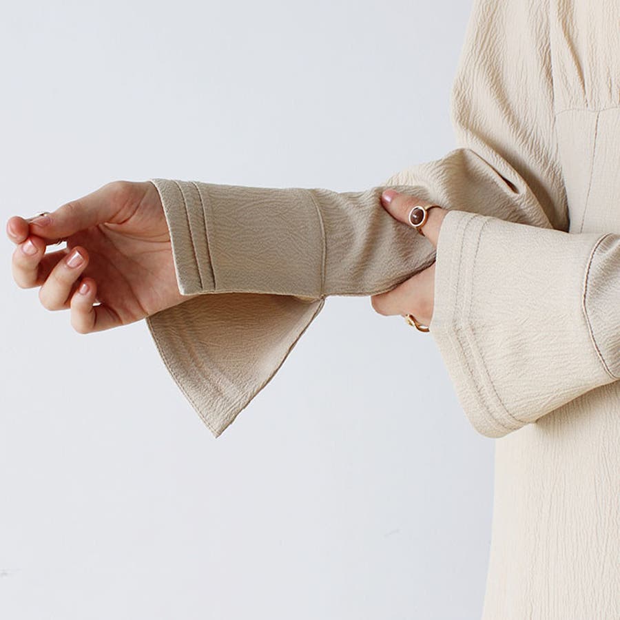 ■ 品質/ポリエステル99%、 ポリウレタン1%■ サイズ(cm)/約S:バスト89、肩幅33、前身丈126、袖丈64M:バスト94、肩幅34、前身丈127、袖丈65L:バスト99、肩幅35、前身丈128、袖丈66●裏地付 ●袖スリット(約11)●ファスナー後■ 取扱い/手洗い
