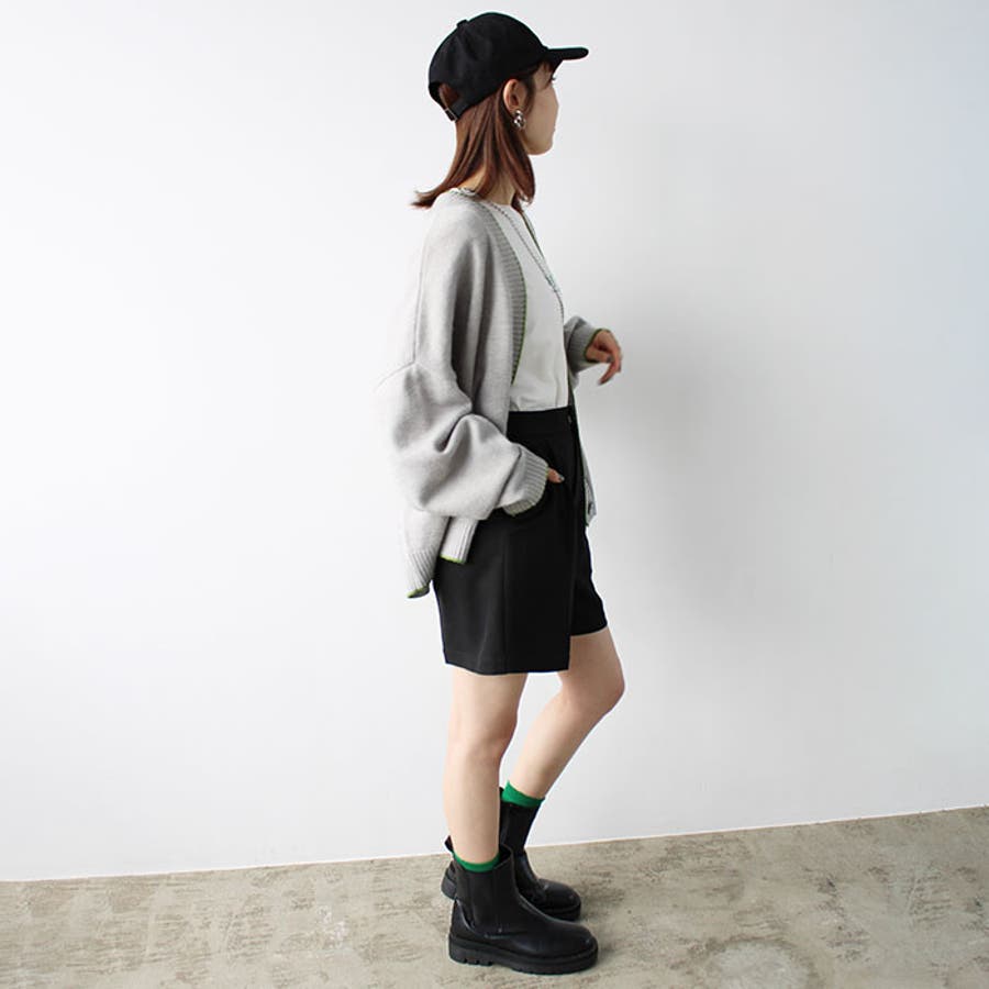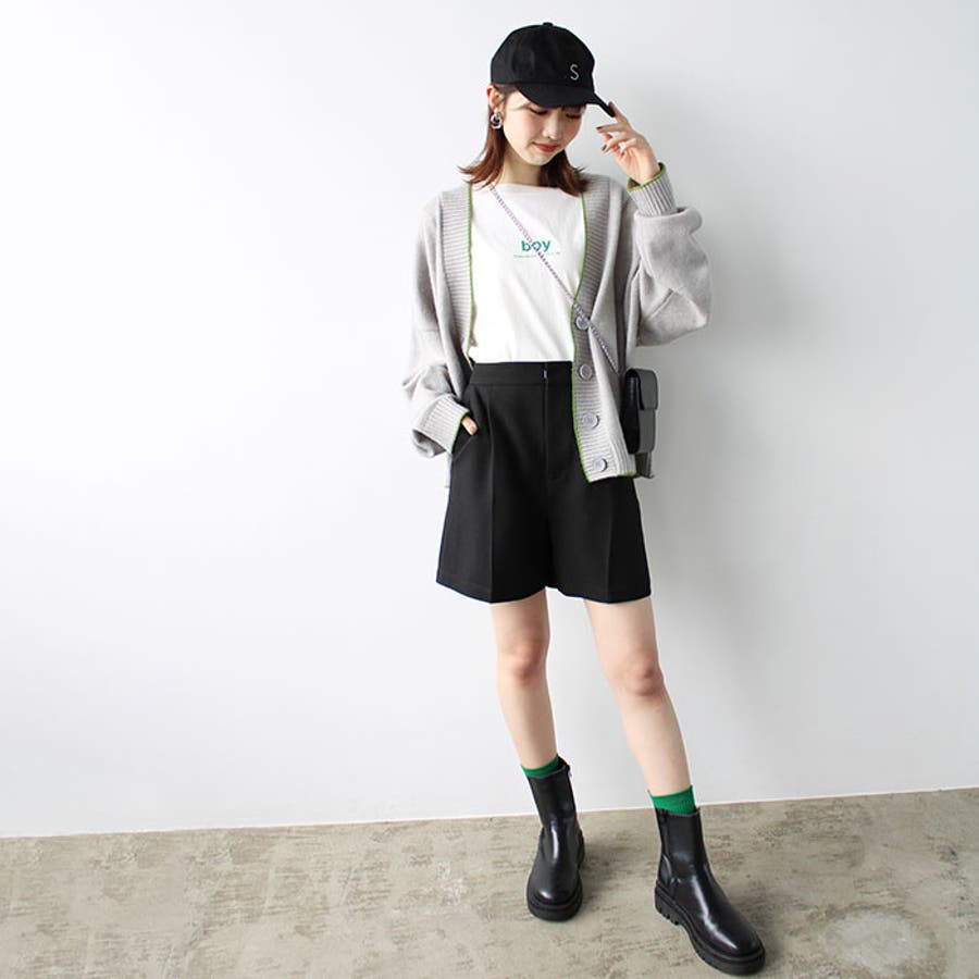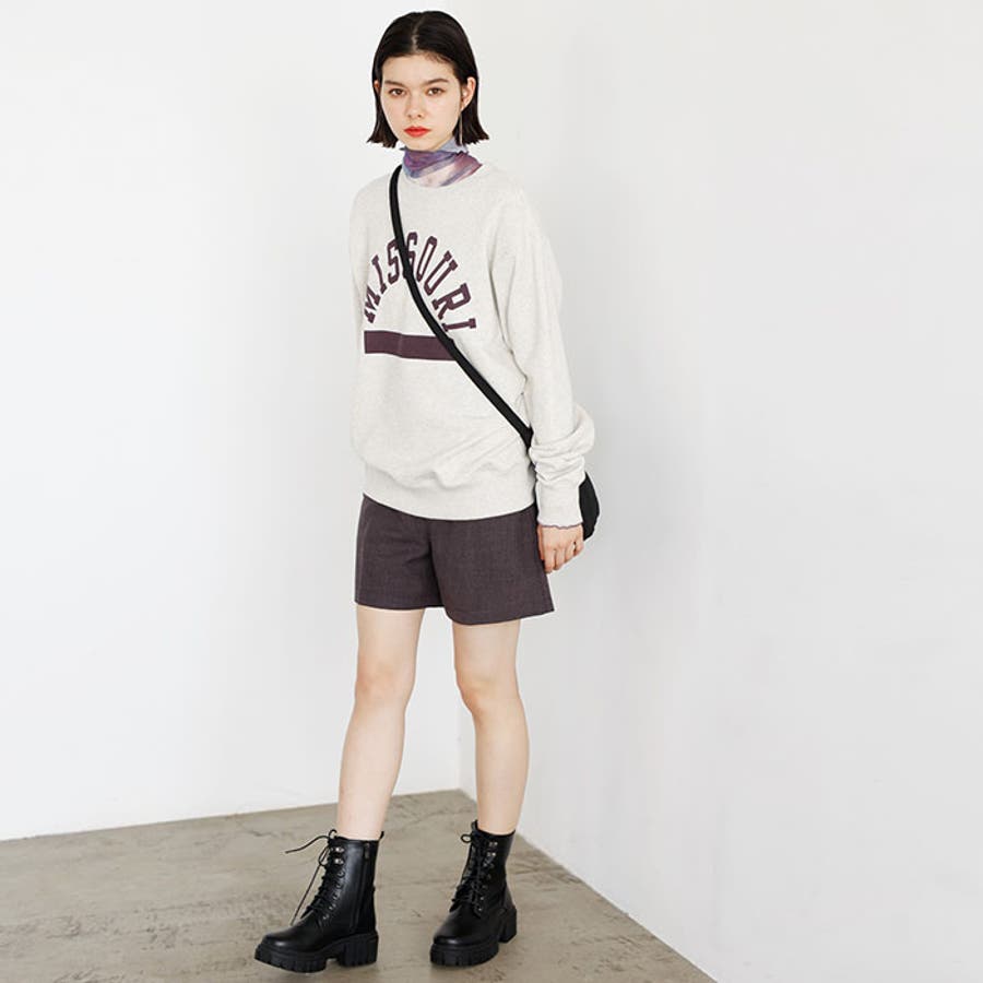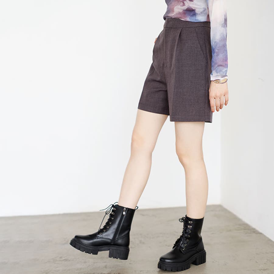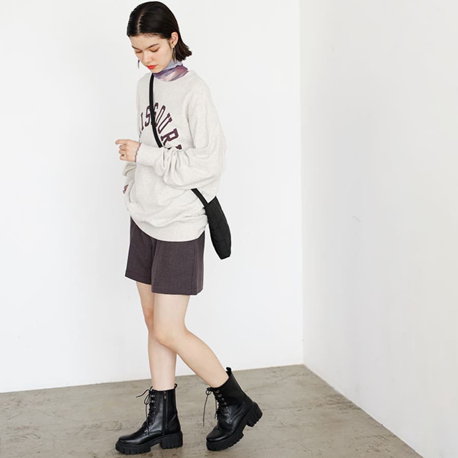 厚底のブーツを合わせるとぐっと今っぽい雰囲気になります。