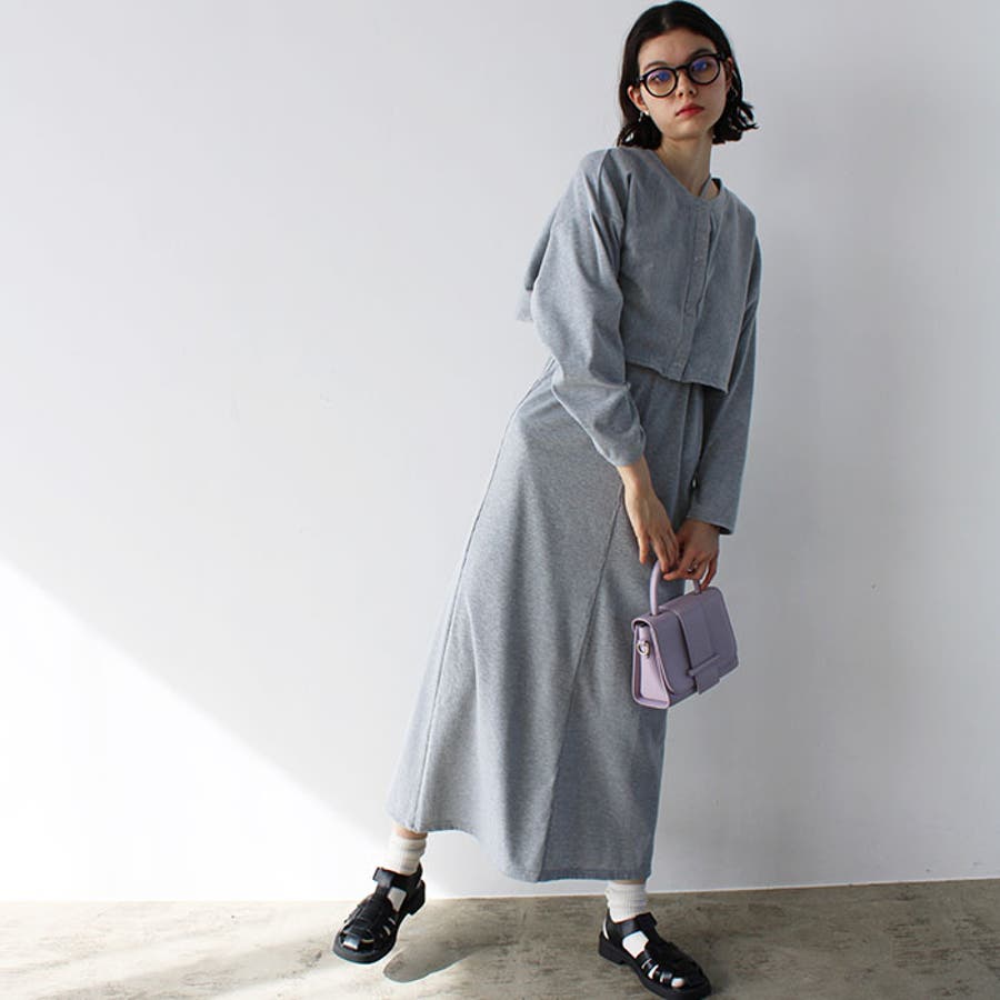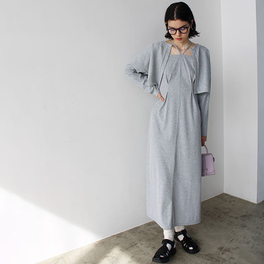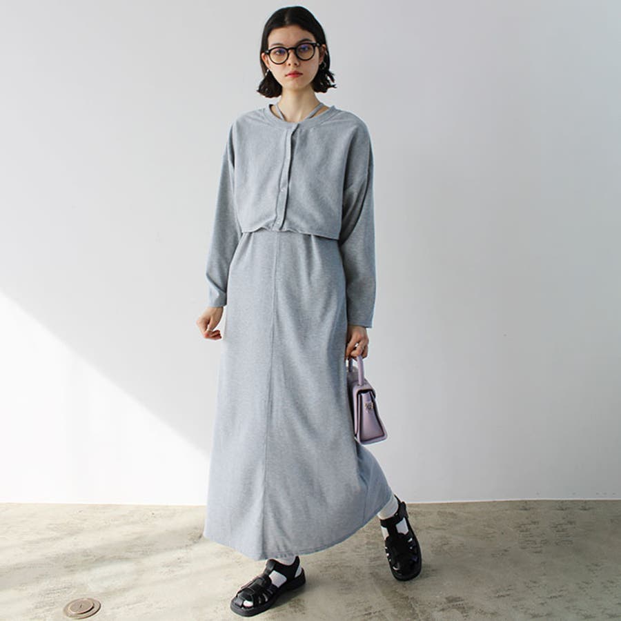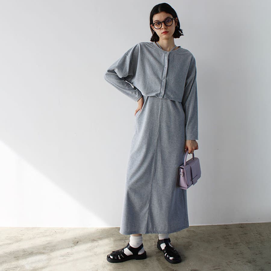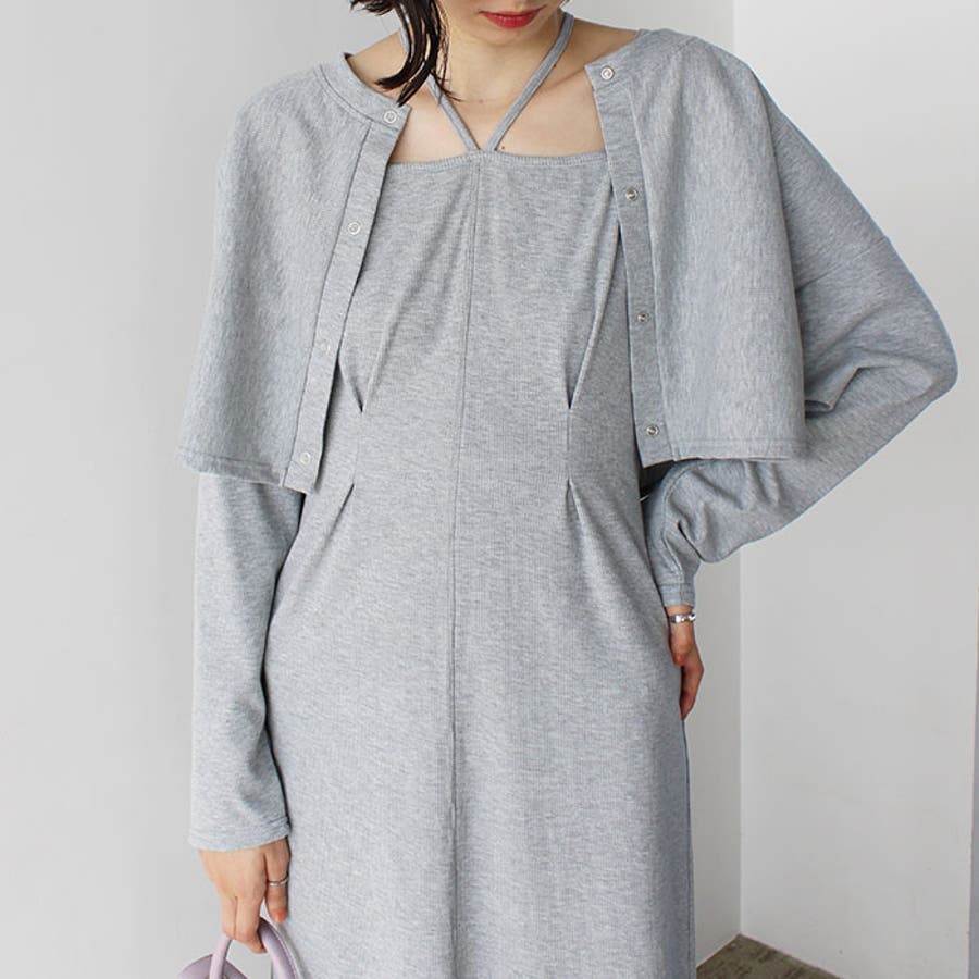 ミックス見えリブ素材ワンピ&カーディガン