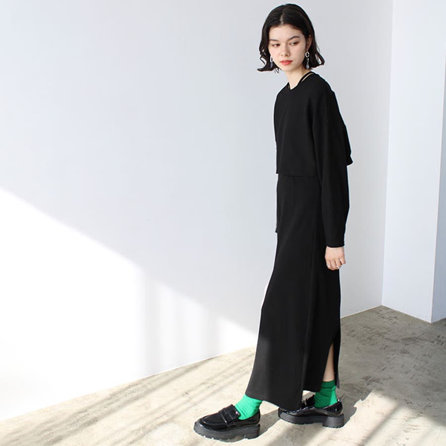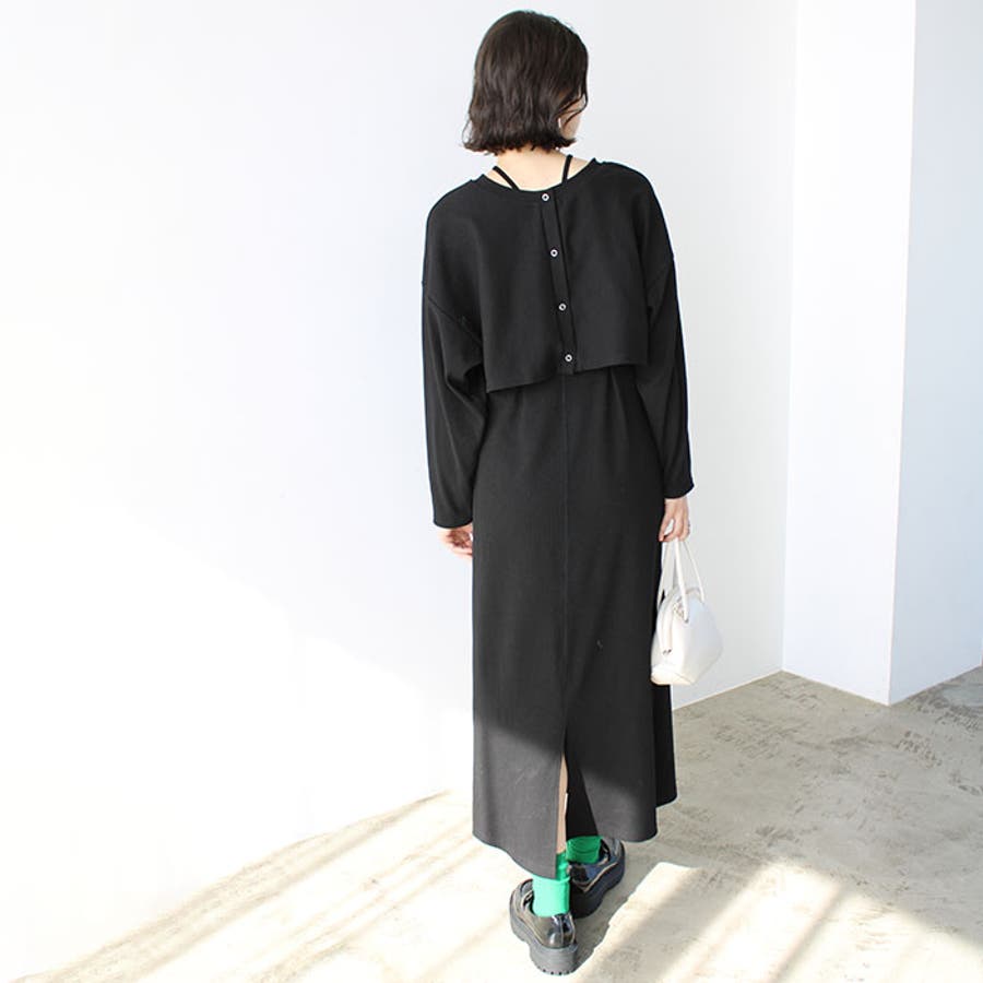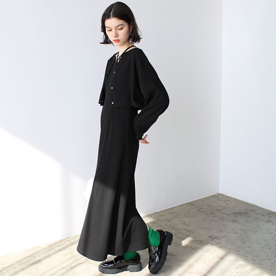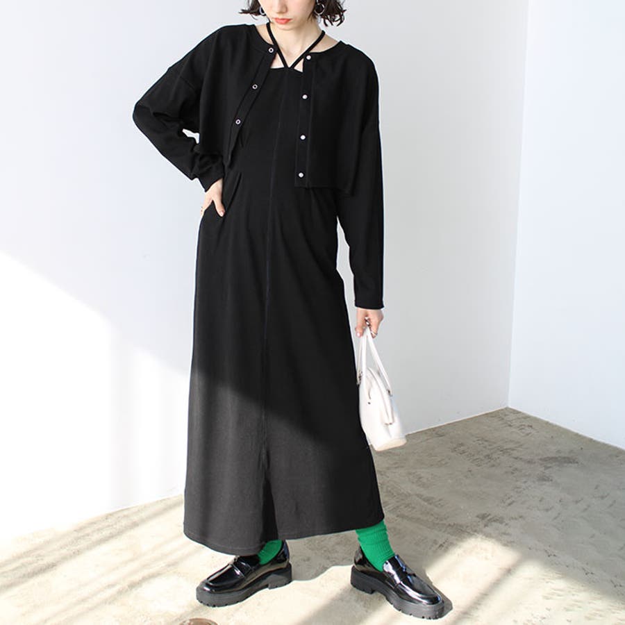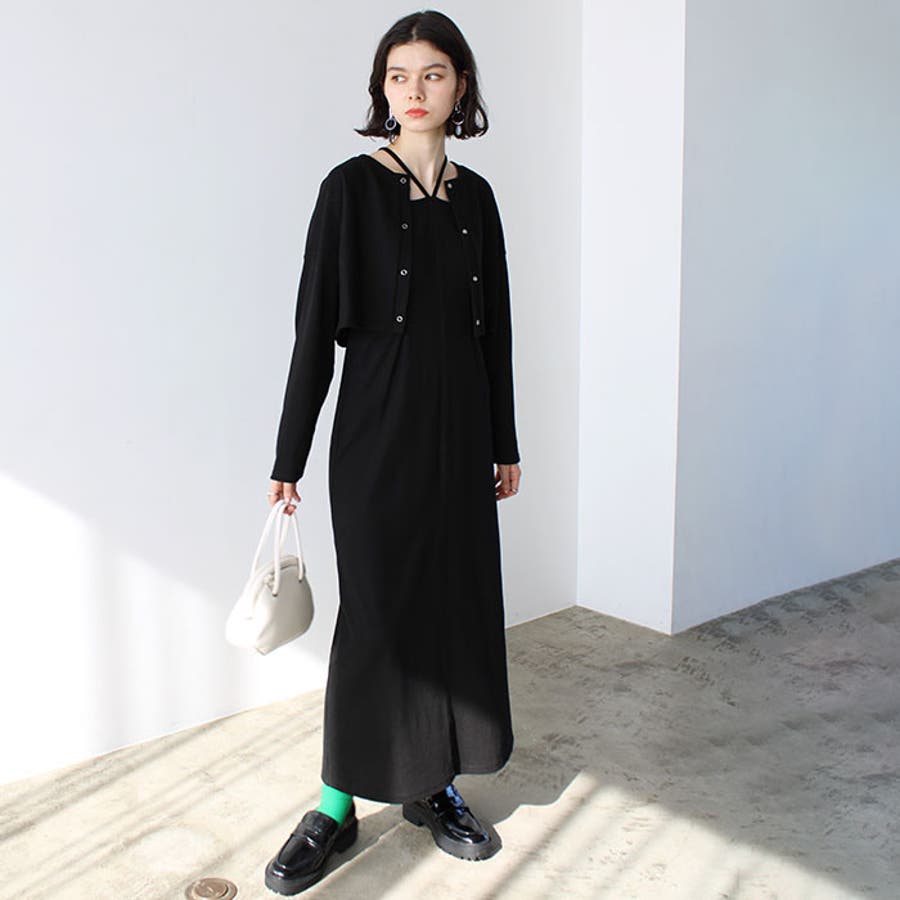 ミックス見えリブ素材ワンピ&カーディガン