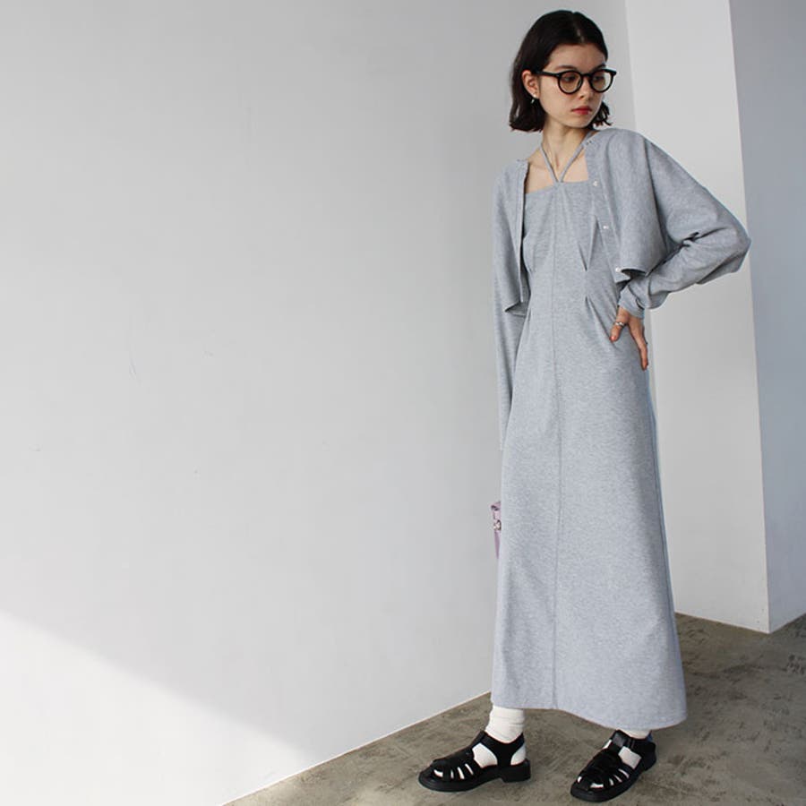 ■ 品質/ポリエステル64%、綿33%、ポリウレタン3%■ サイズ(cm)/約カーディガンM:バスト106、肩幅60、前身丈38、裄丈75L:バスト112、肩幅63、前身丈39、裄丈76.5ワンピースM:バスト78、 前身丈126L:バスト84、 前身丈127●ワンピース 肩紐調節可(取り外し不可)■ 取扱い/手洗い●裏地無