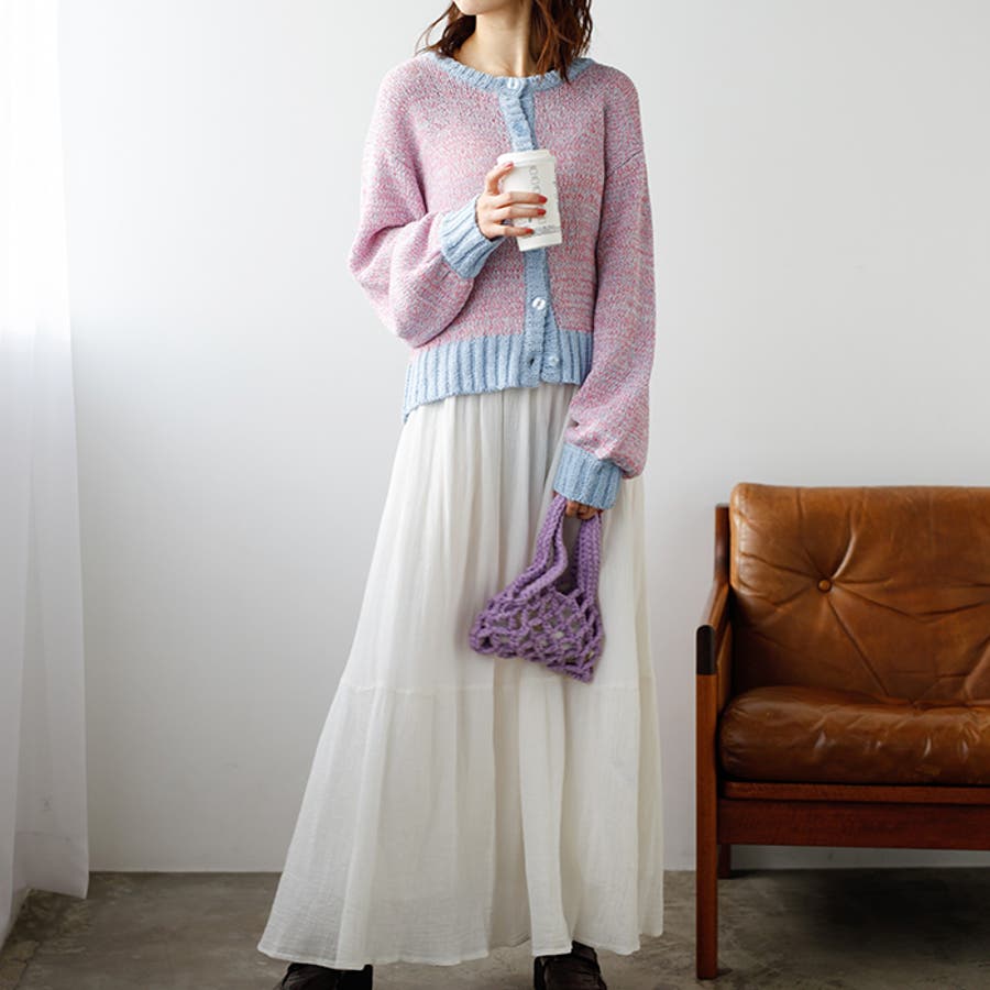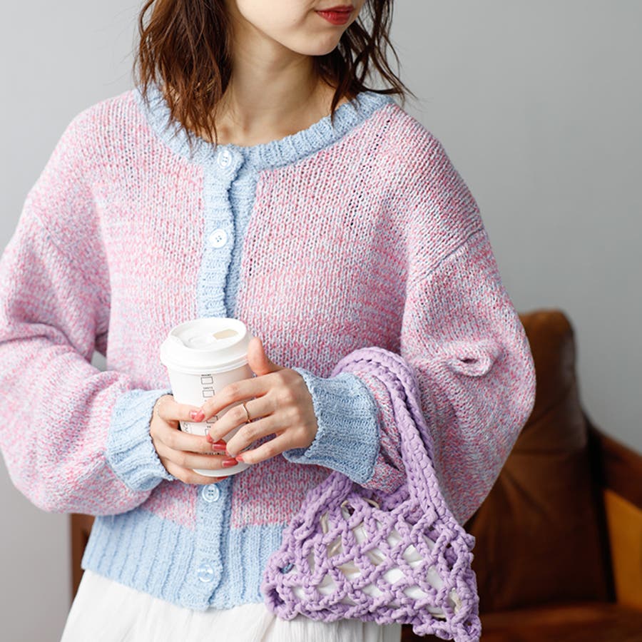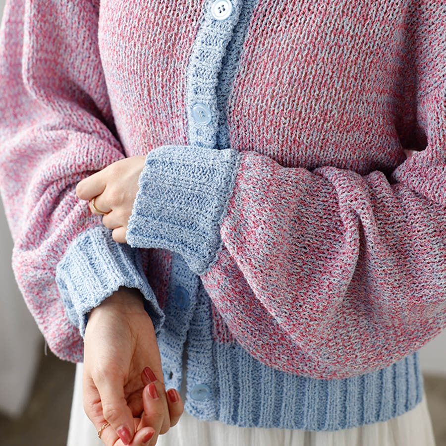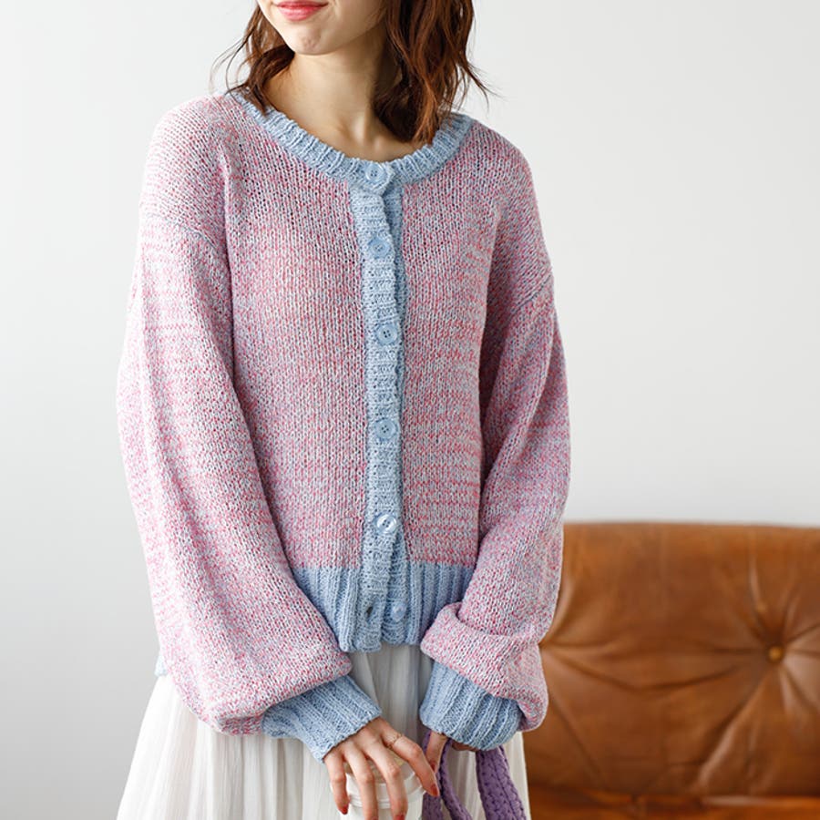 前後2WAYミックスカラーニットカーディガン