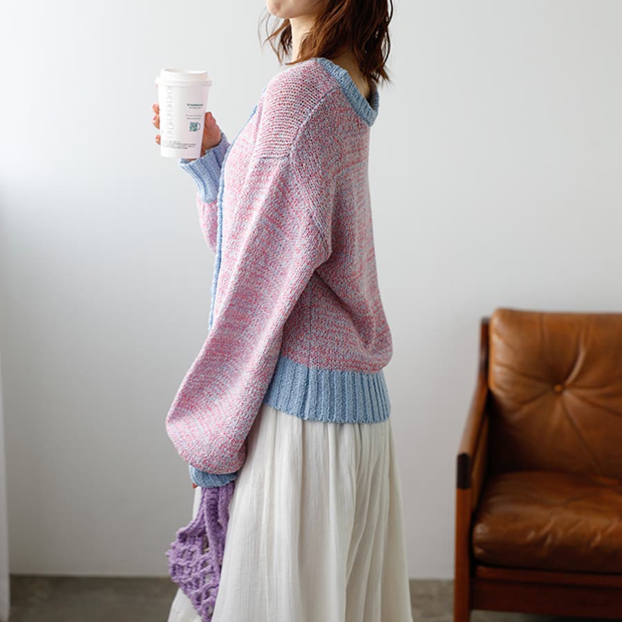 ミックスカラーが今っぽいニットトップス