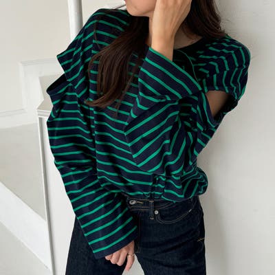 ボーダー&カットアウトがトレンドライクなカットソー。