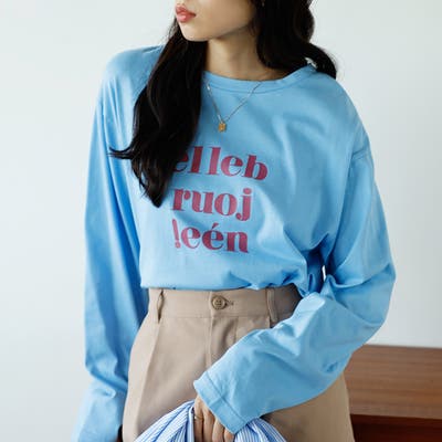 1枚で着用するのはもちろん、レイヤードコーデでロゴをチラ見せするのも可愛い。