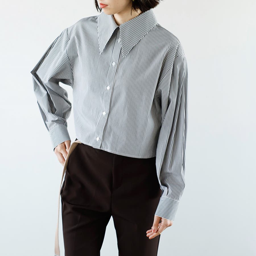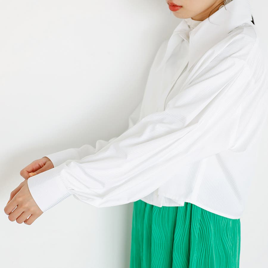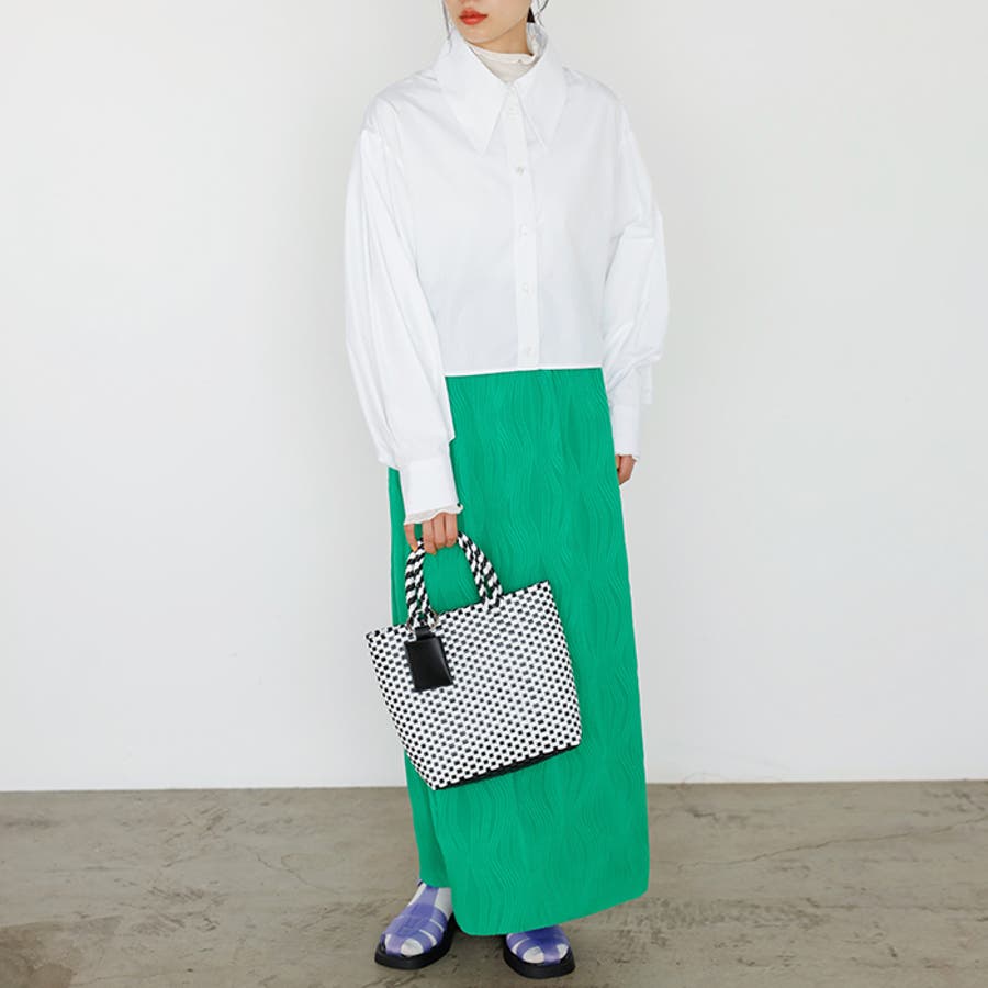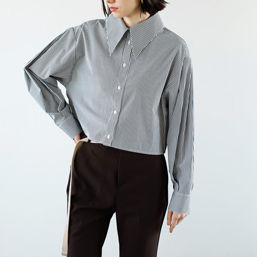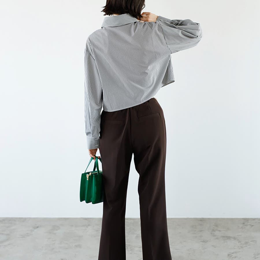 ハイウエストパンツやスカート、デニムに合わせるだけで目線があがる分、