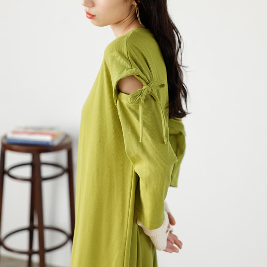 2WAY袖カッティングテレコリブワンピース