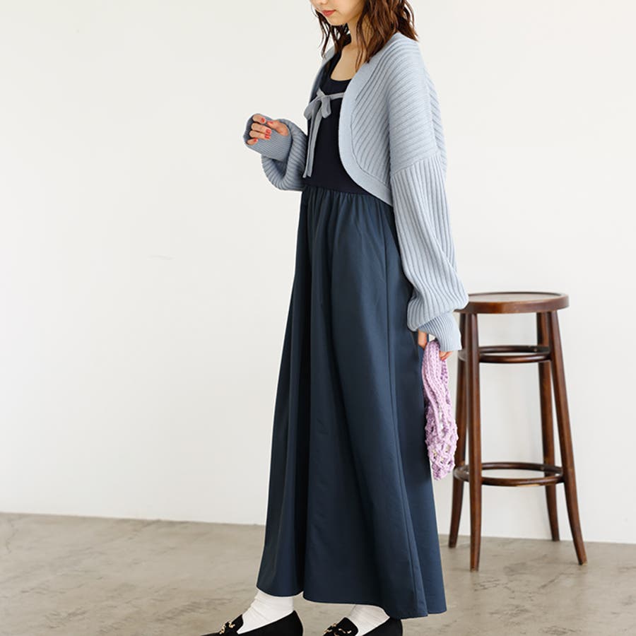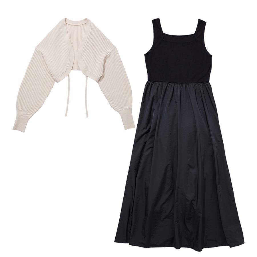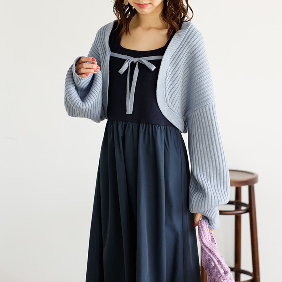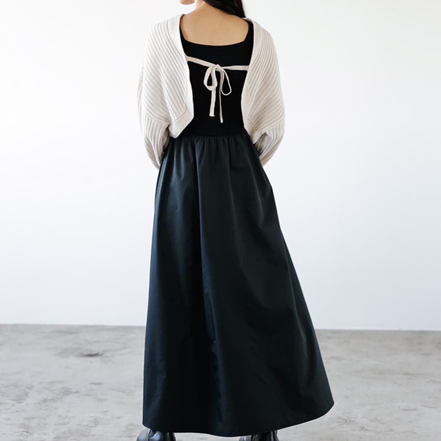 〇ニットボレロと異素材ドッキングワンピースとの2点セット
