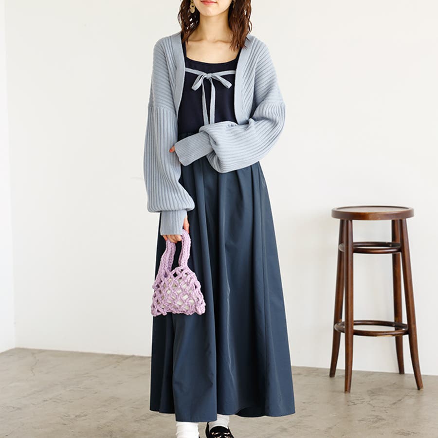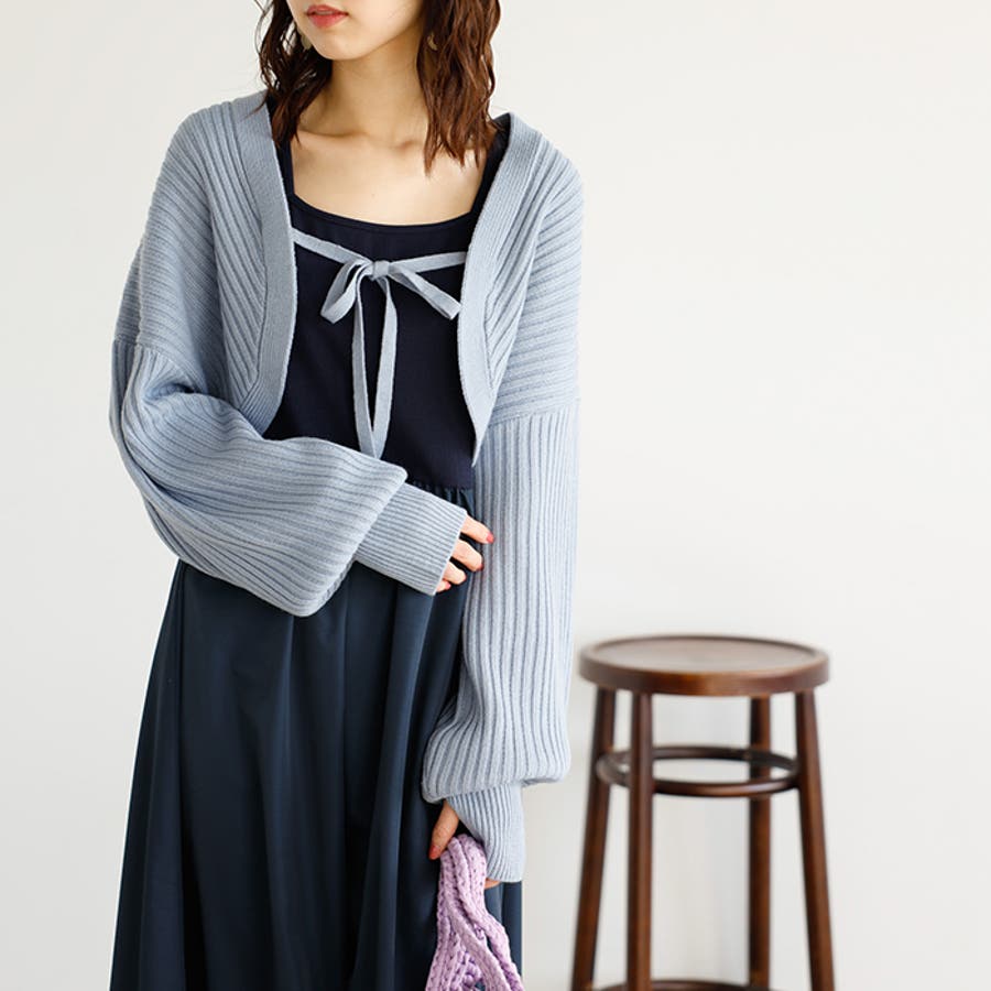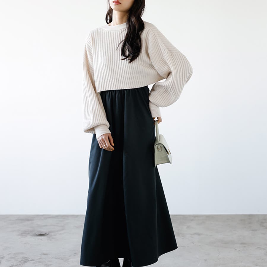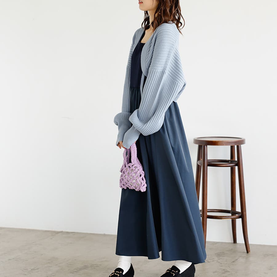 〇ニットボレロと異素材ドッキングワンピースとの2点セット