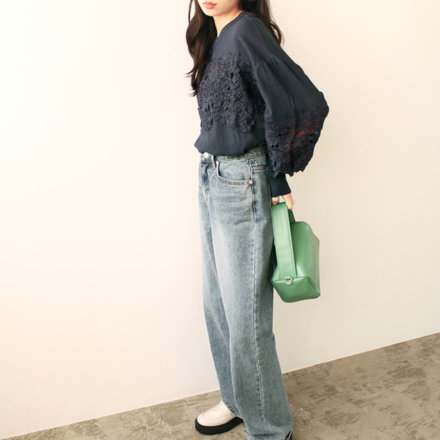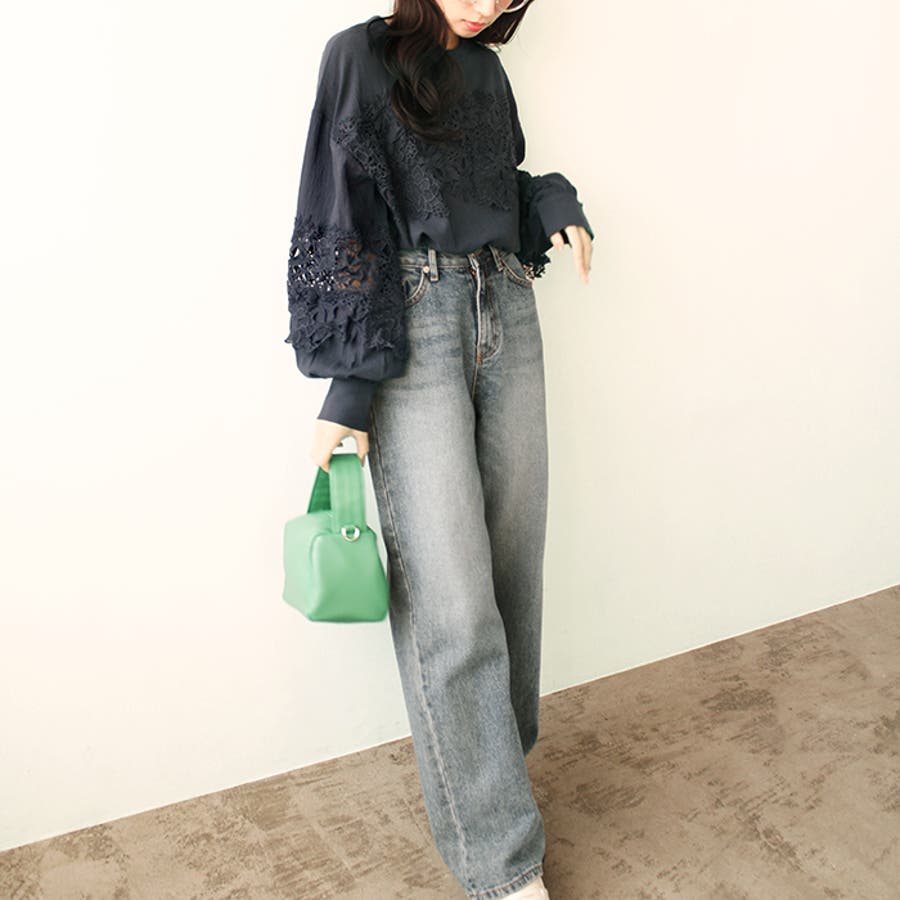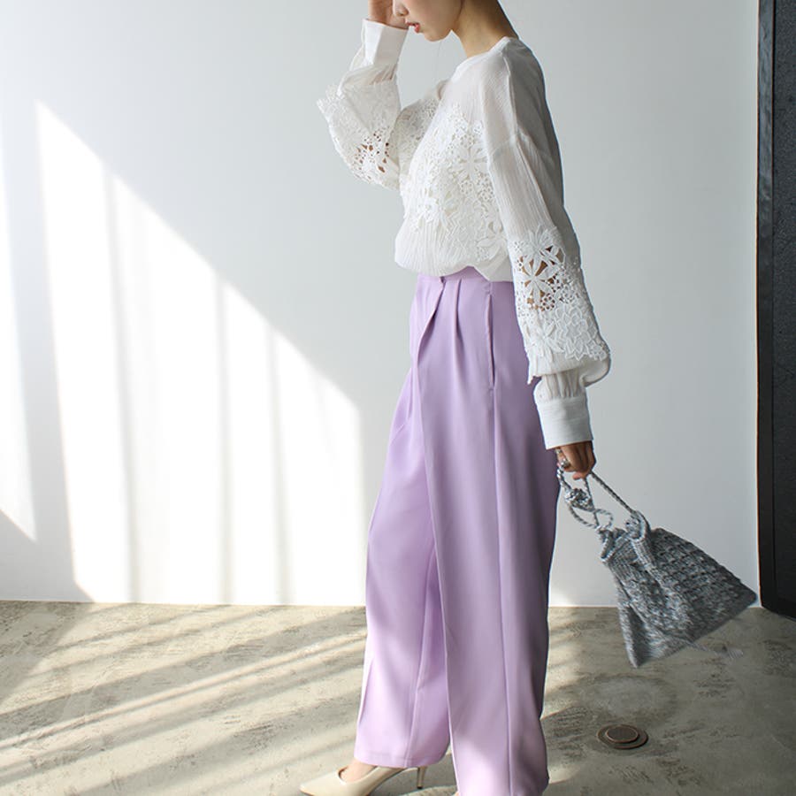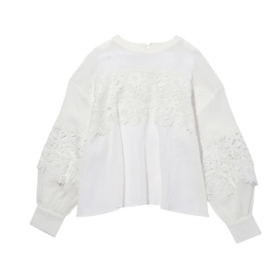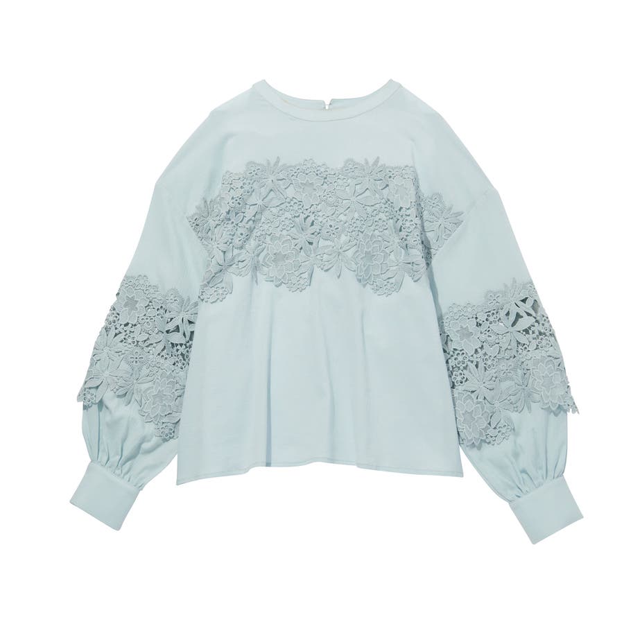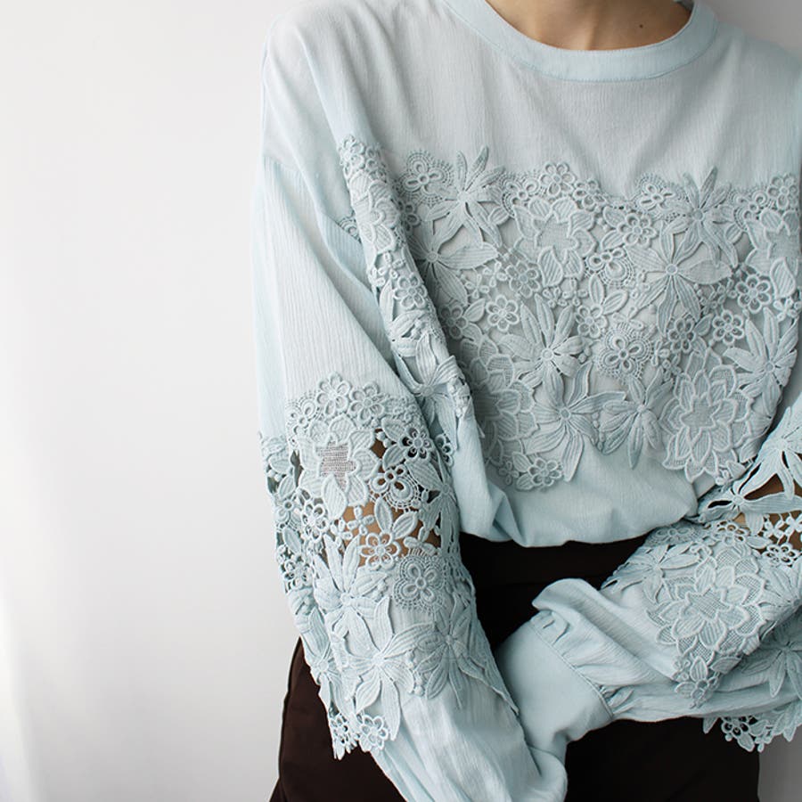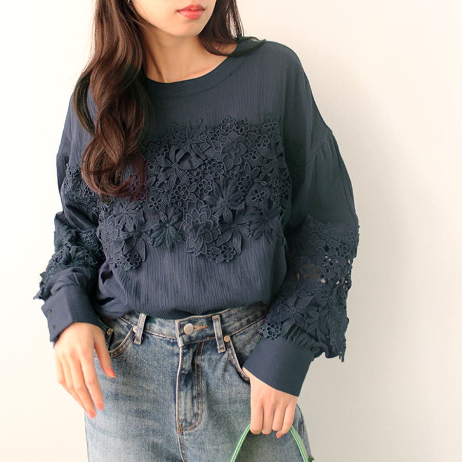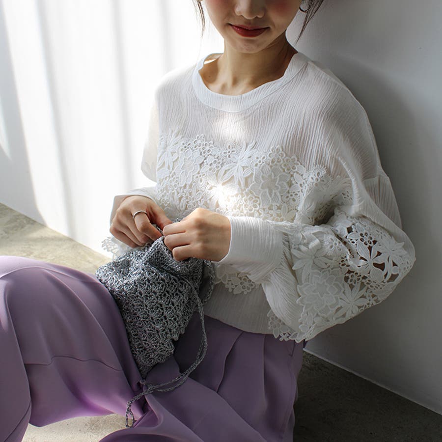 フラワーレースが映えるトップスなので、普段のボトムに合わせるだけでスタイリングが完成♪