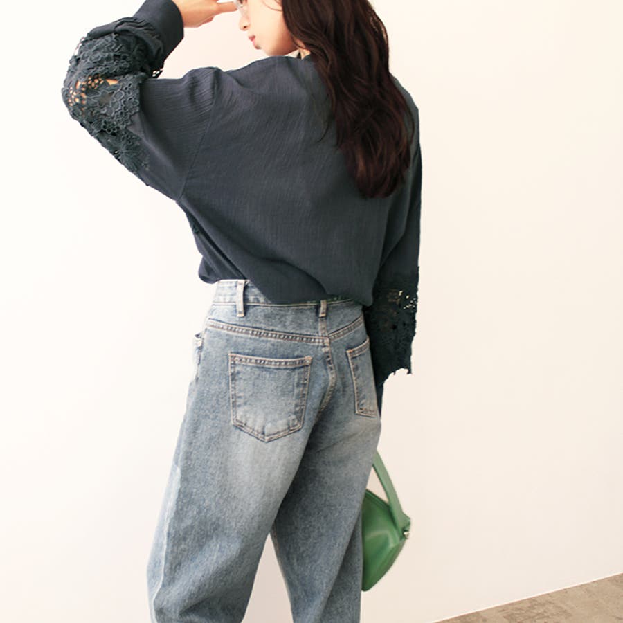 袖のレースから見える程よい肌見せが抜け感をプラス♪