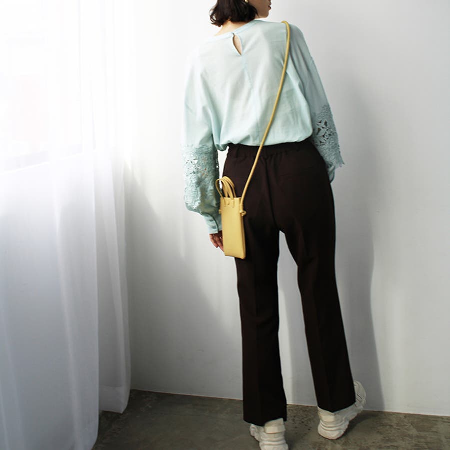 カラーパンツを合わせるとぐっと今っぽい印象になります。