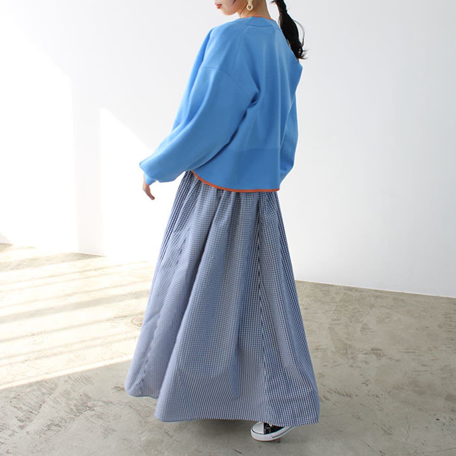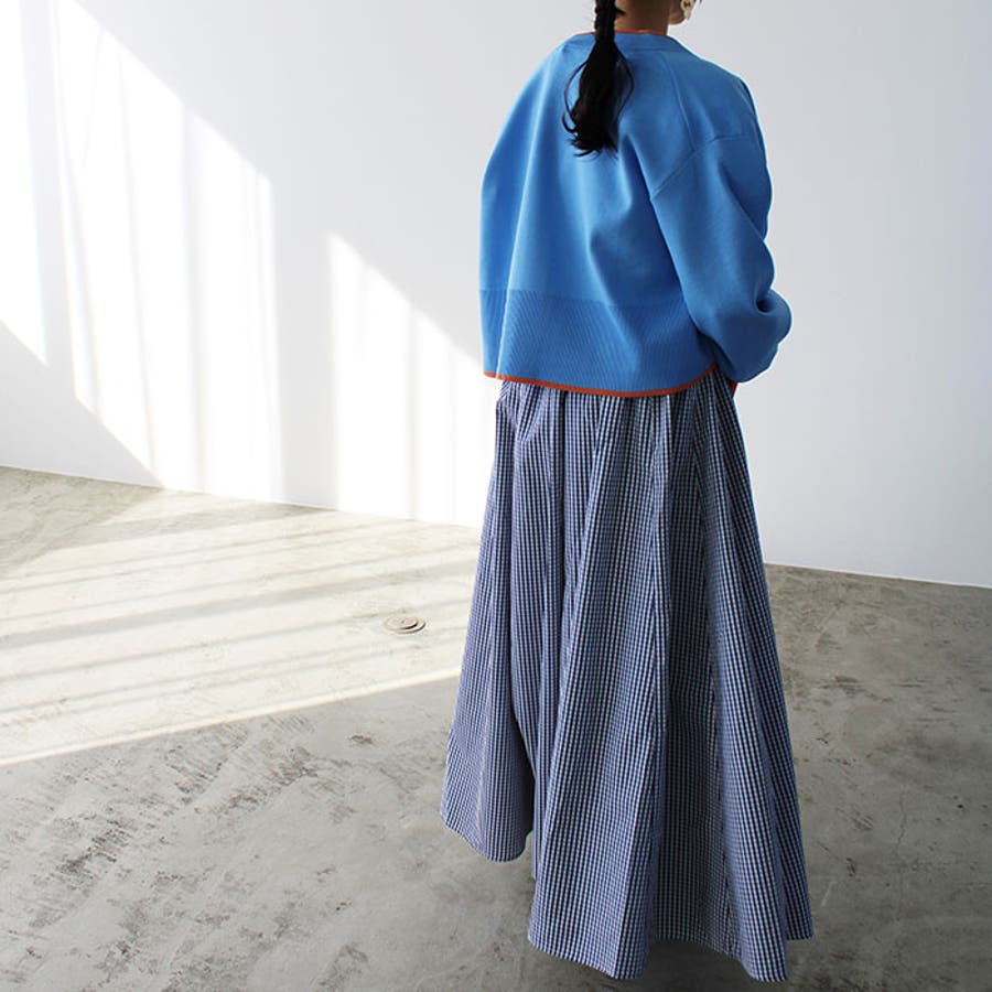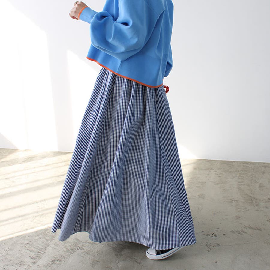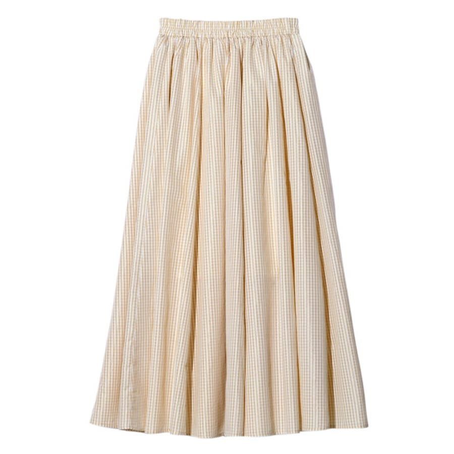 〇今季注目のギンガムチェック柄を贅沢に使用したフレアスカート