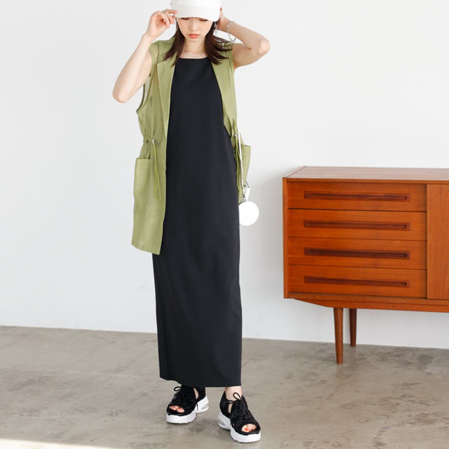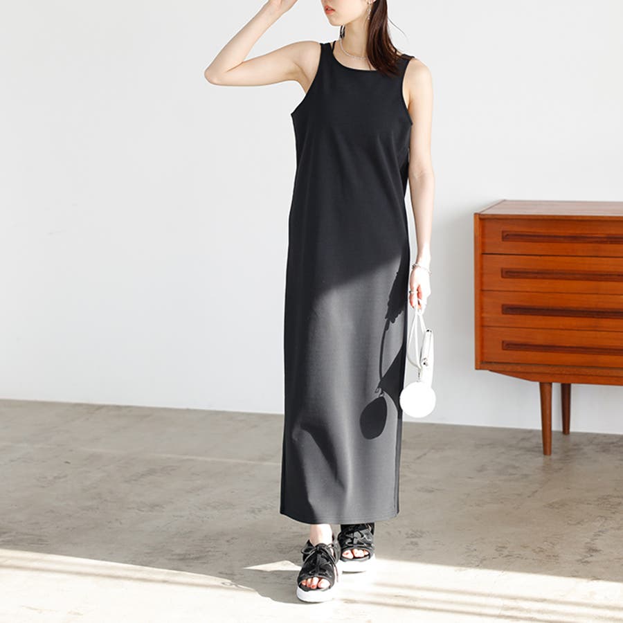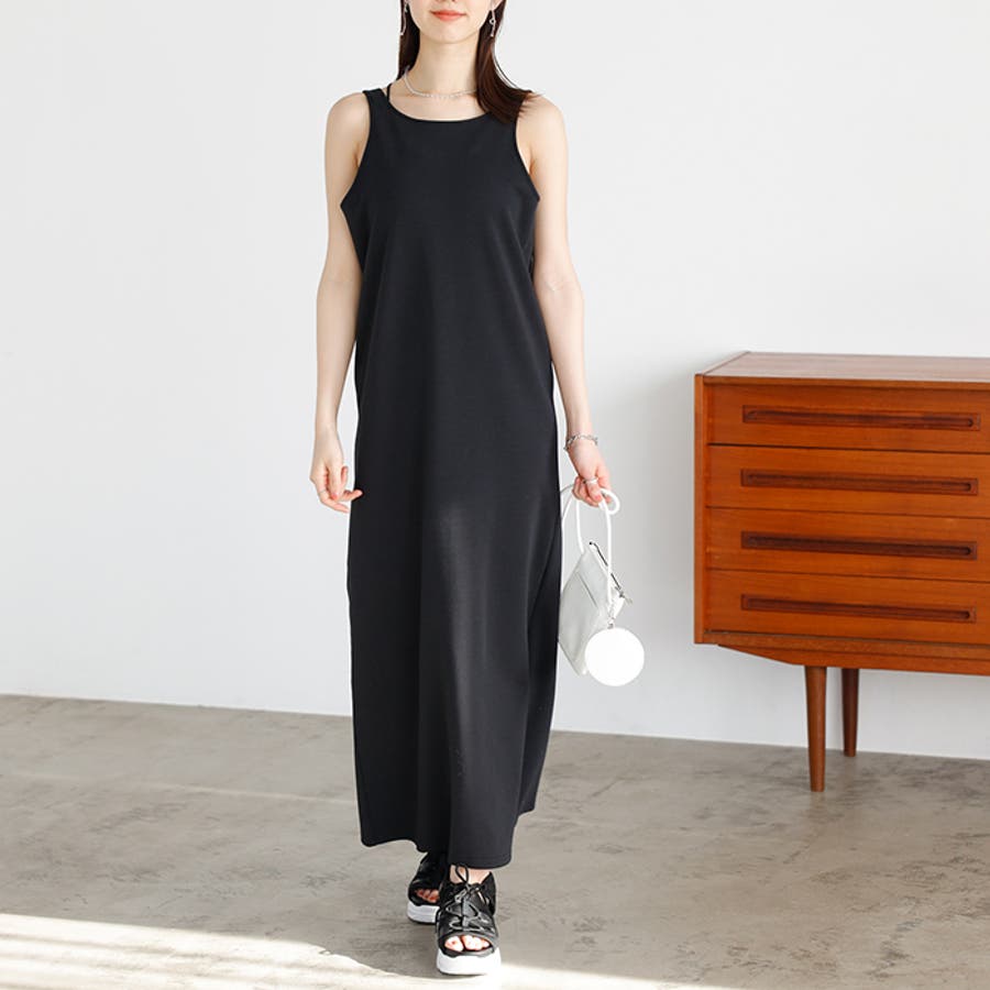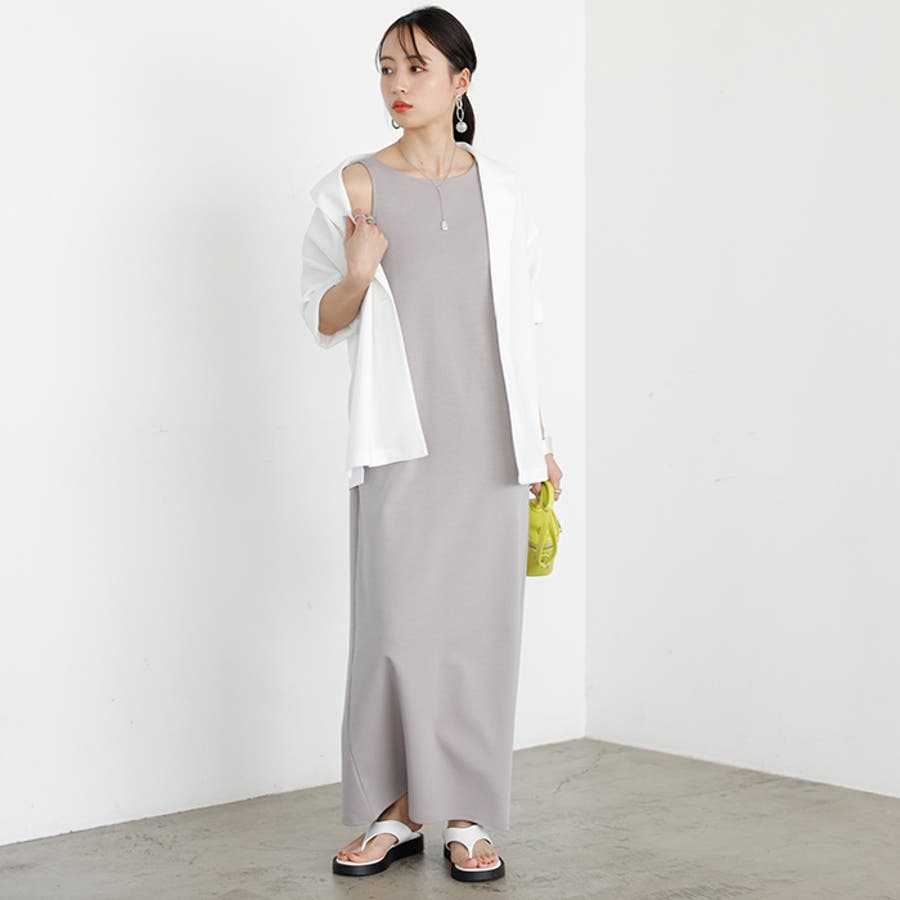 さらっと1枚でネックレッスやきれいめサンダルと合わせて大人っぽく。