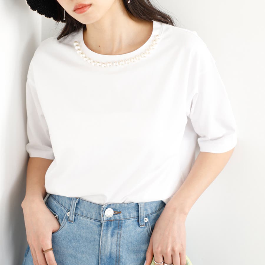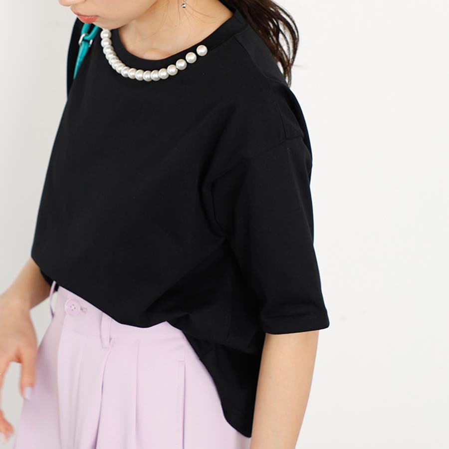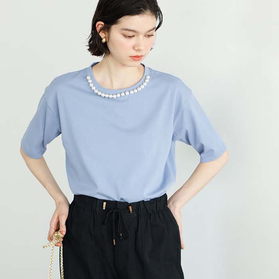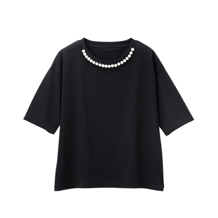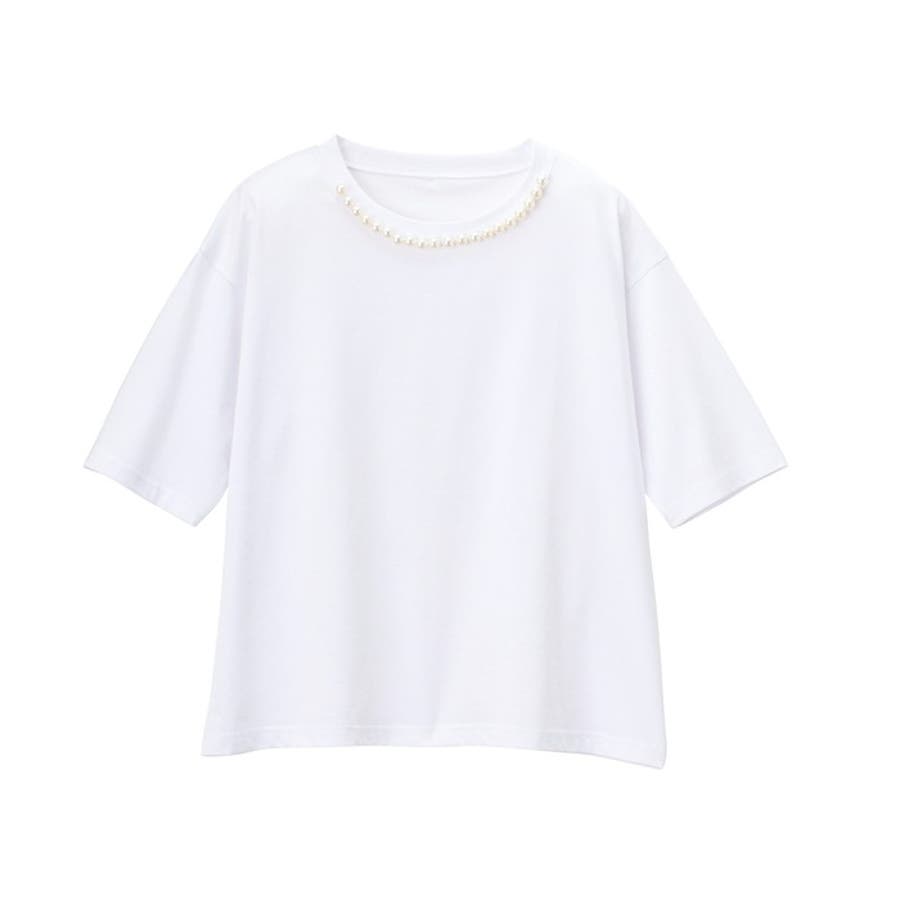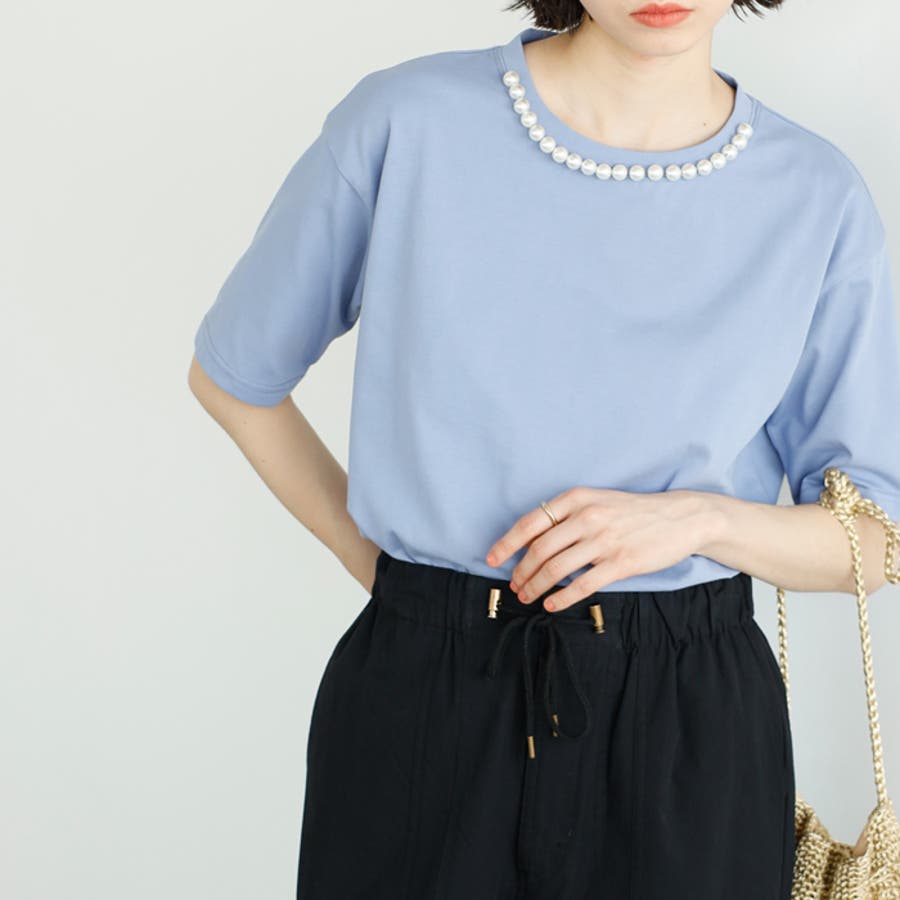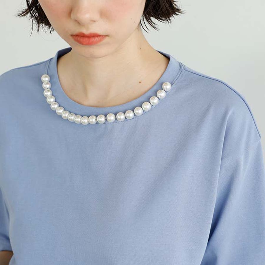華やかなパールビーズをネックレス風にトリミングした1枚。