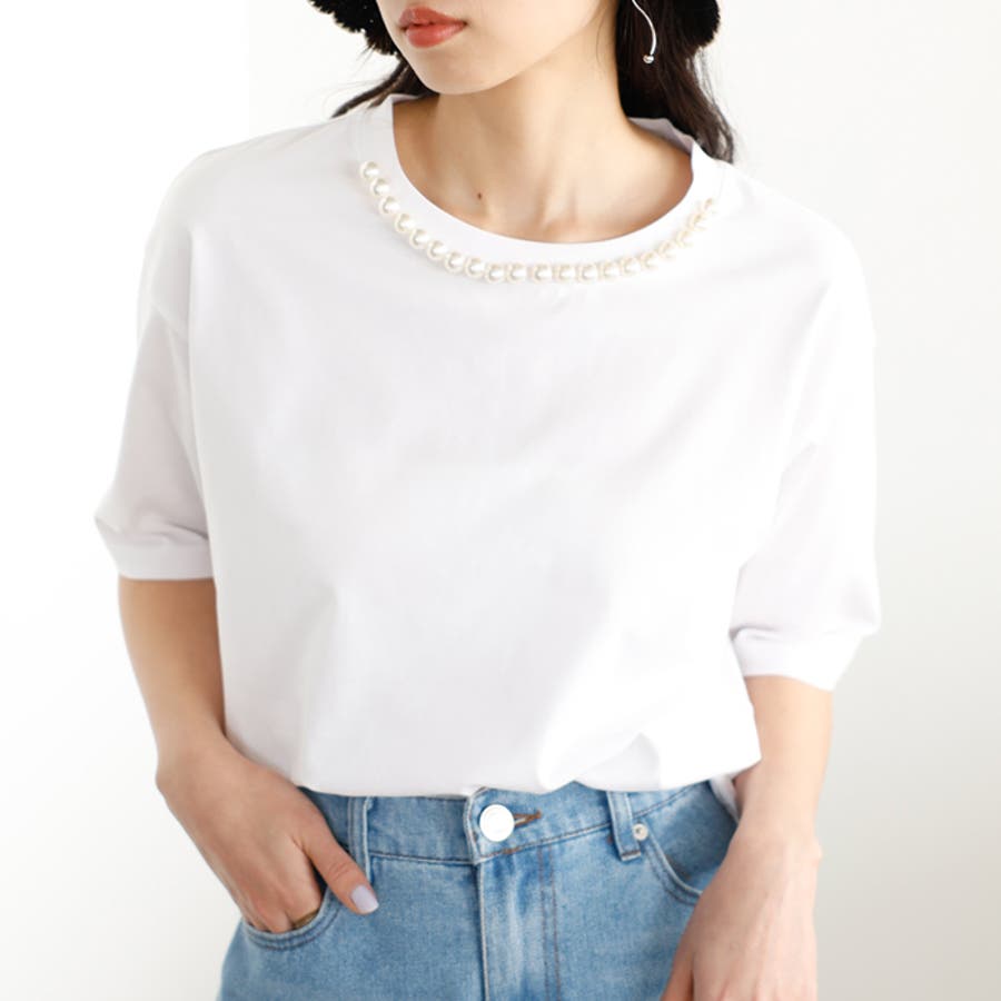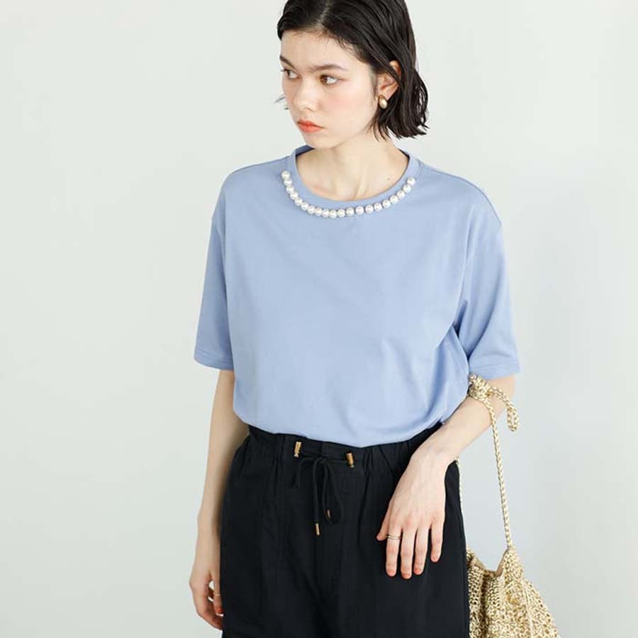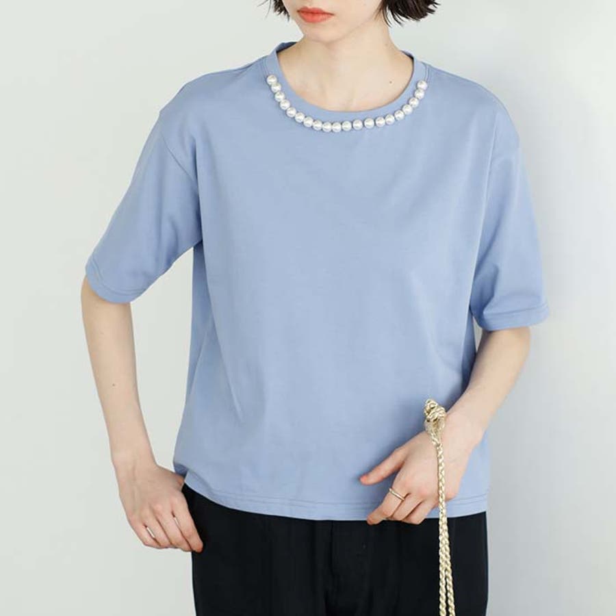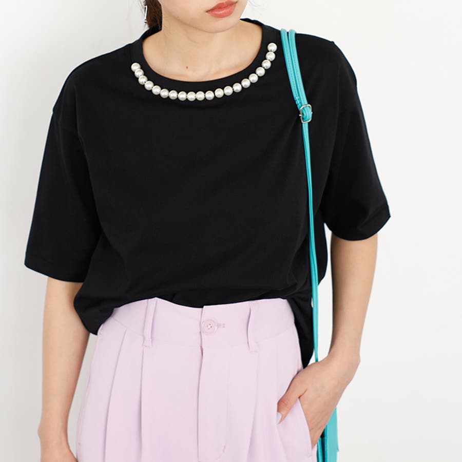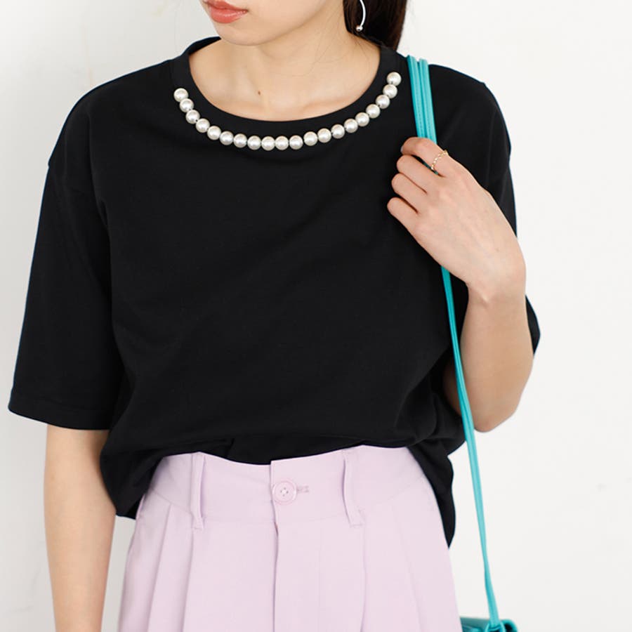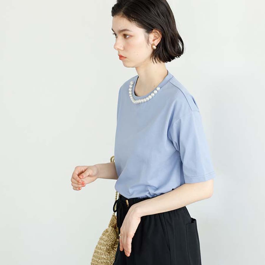 華やかなパールビーズをネックレス風にトリミングした1枚。