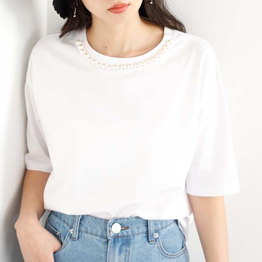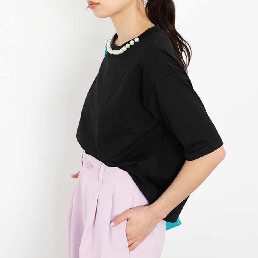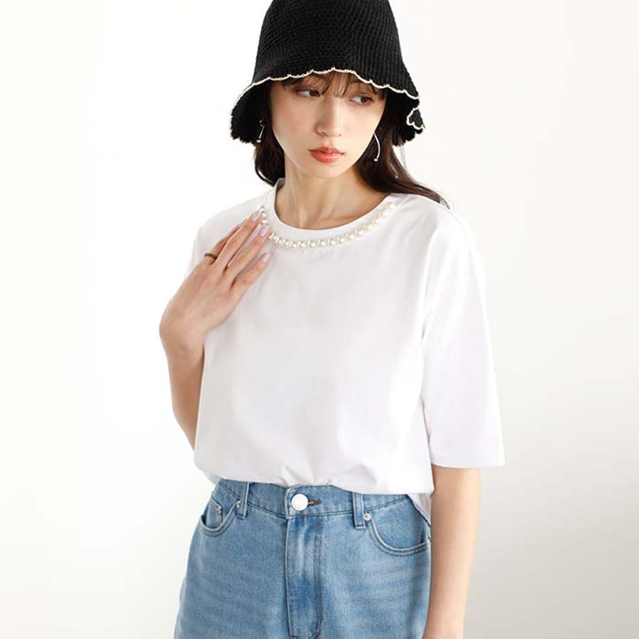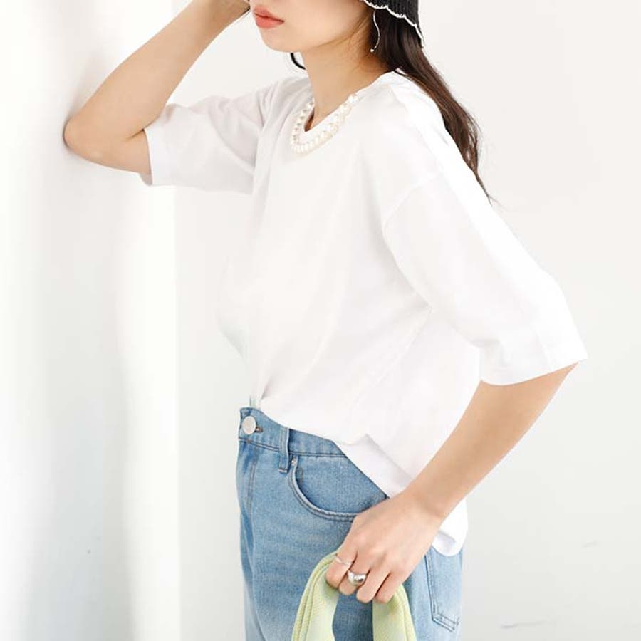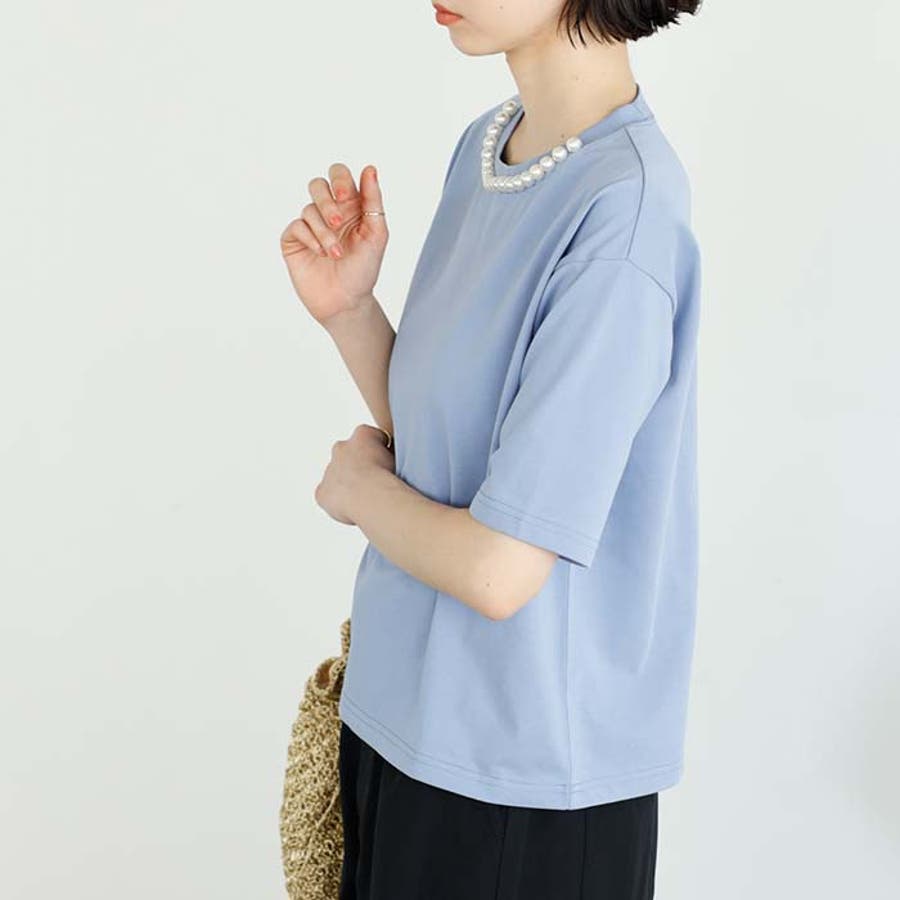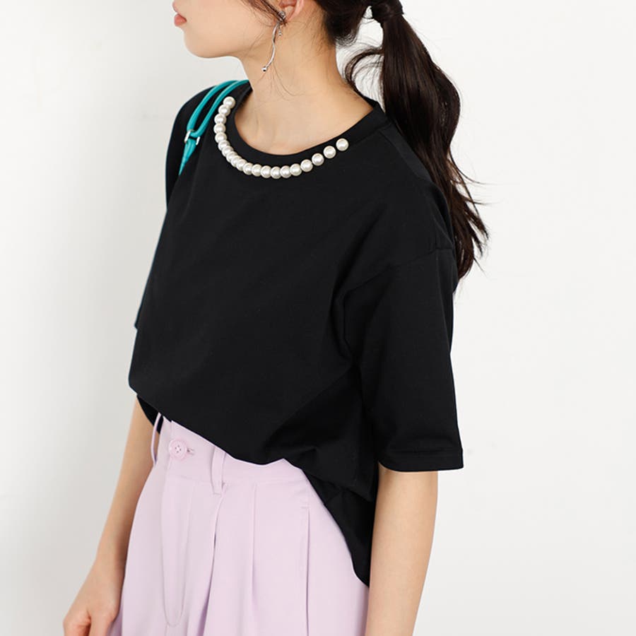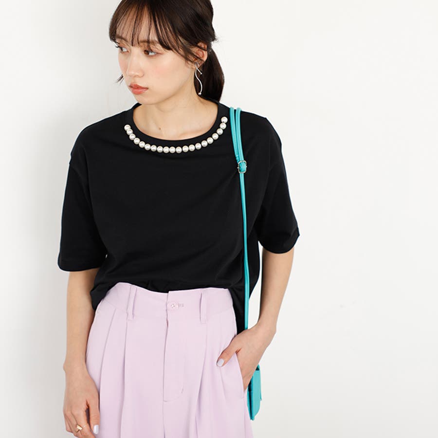 華やかなパールビーズをネックレス風にトリミングした1枚。
