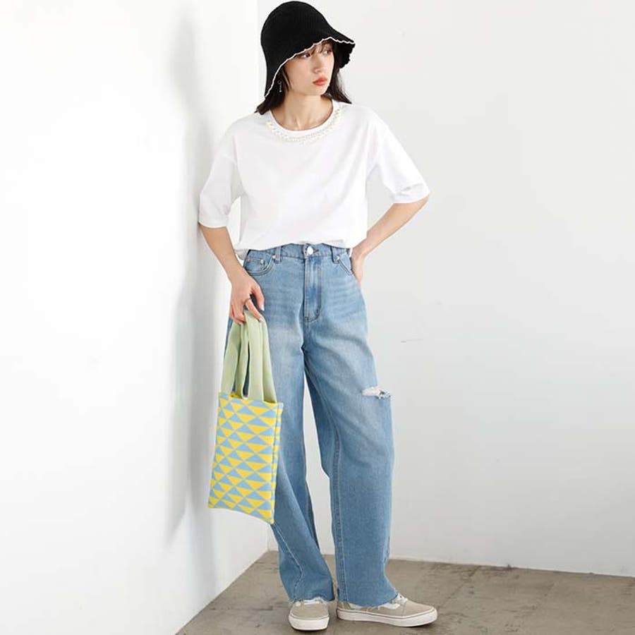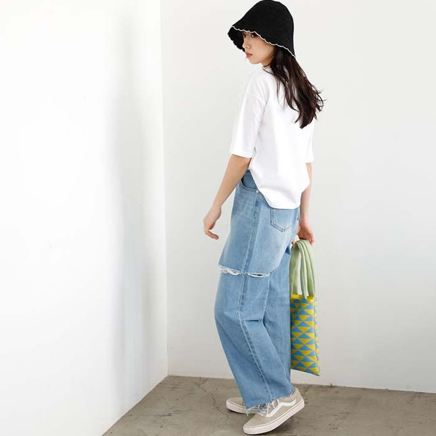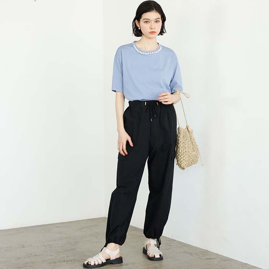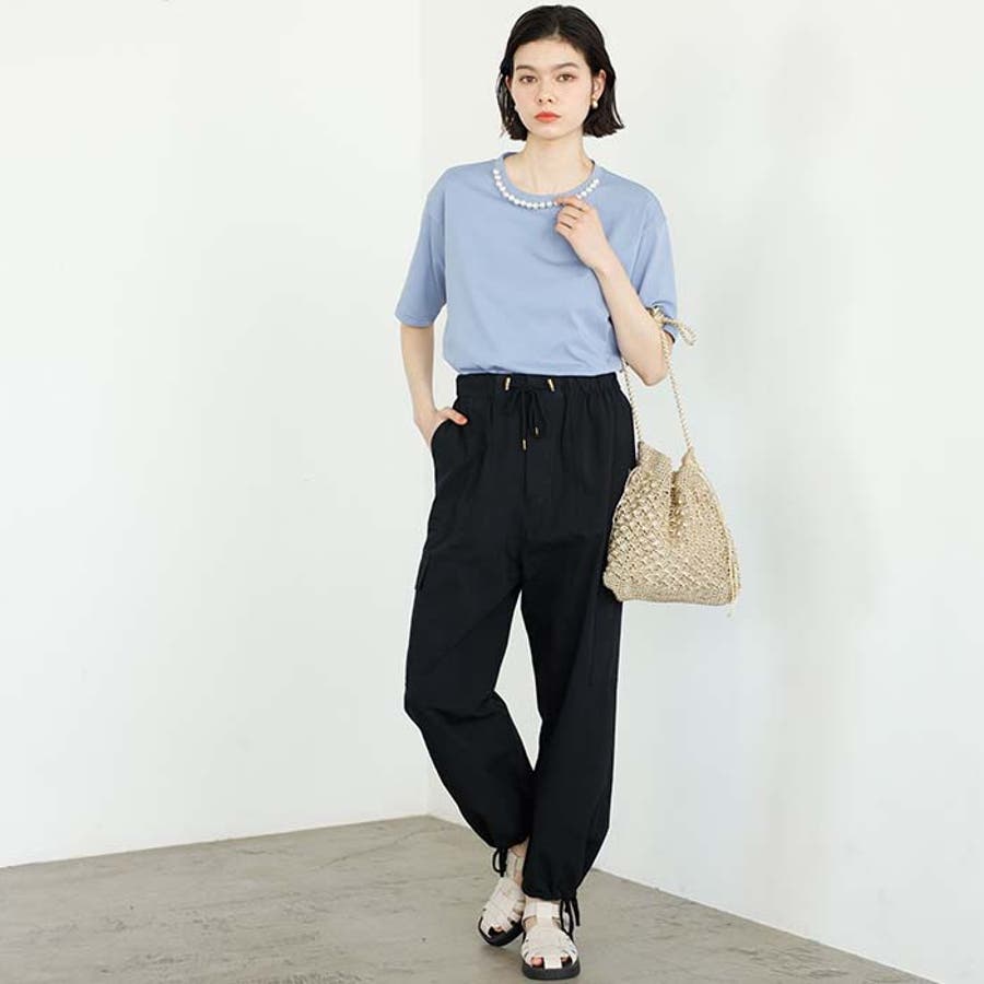 Tシャツを主役にしたウエストアウト×タイトめなパンツのコーディネートもおススメ!