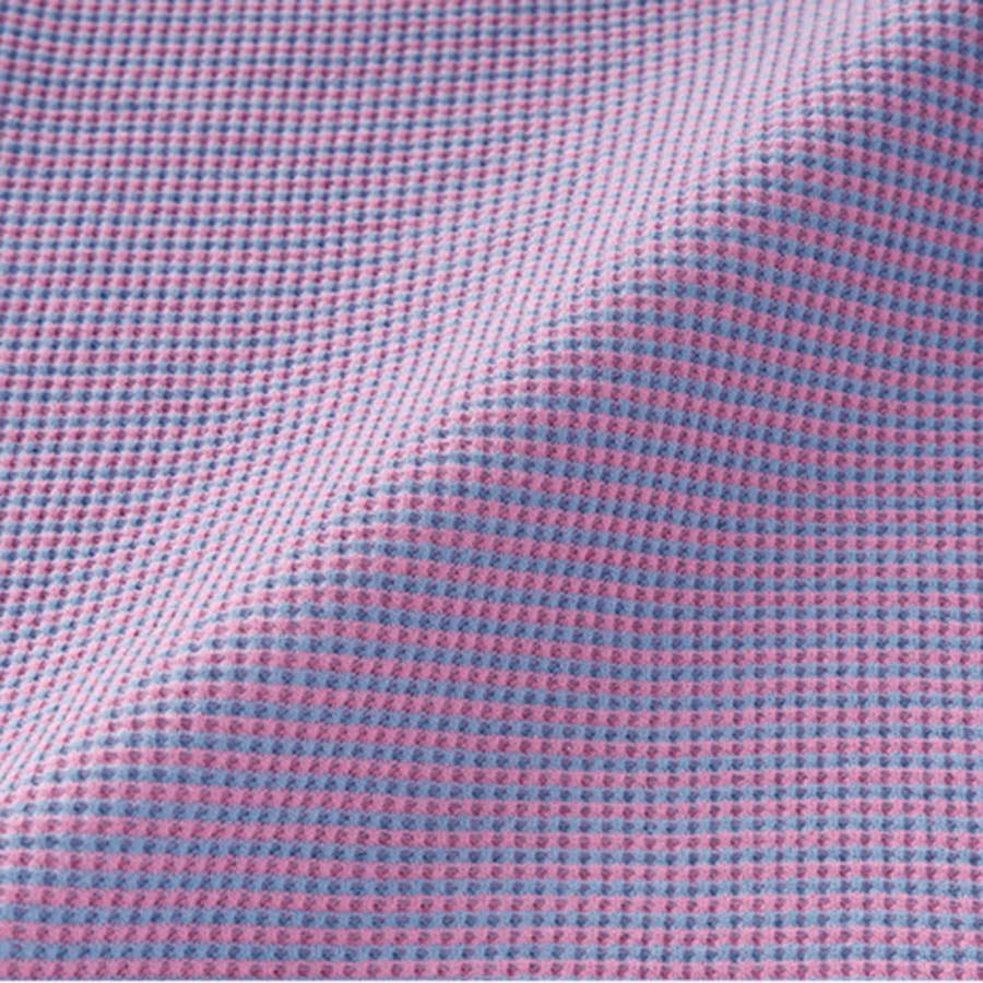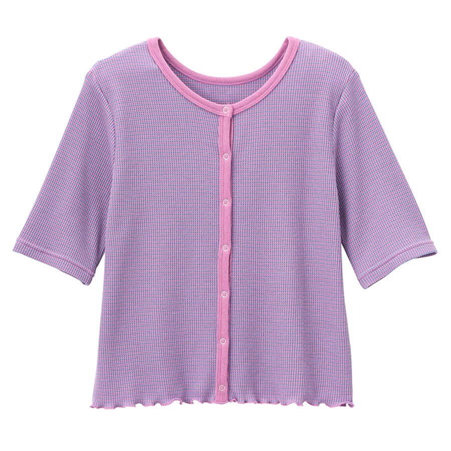〇ストレッチ性のあるワッフルリブ素材を使い、着やすさ抜群のカーディガン
