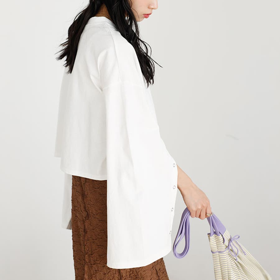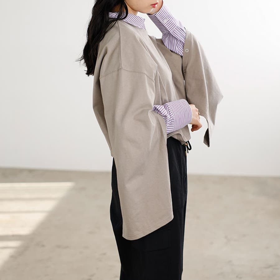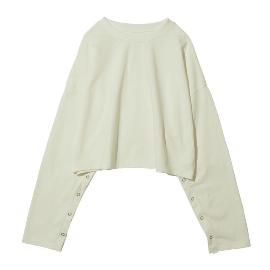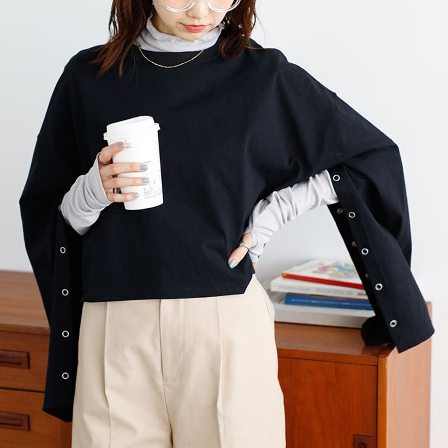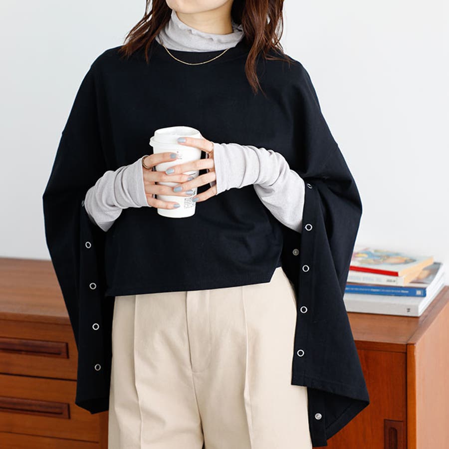 袖の内側のボタンを留め外しすることで、シルエットが変えられるプルオーバー。
