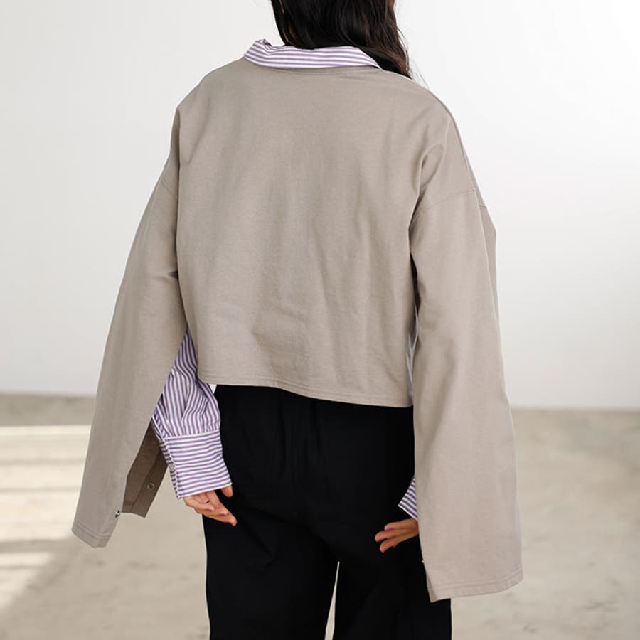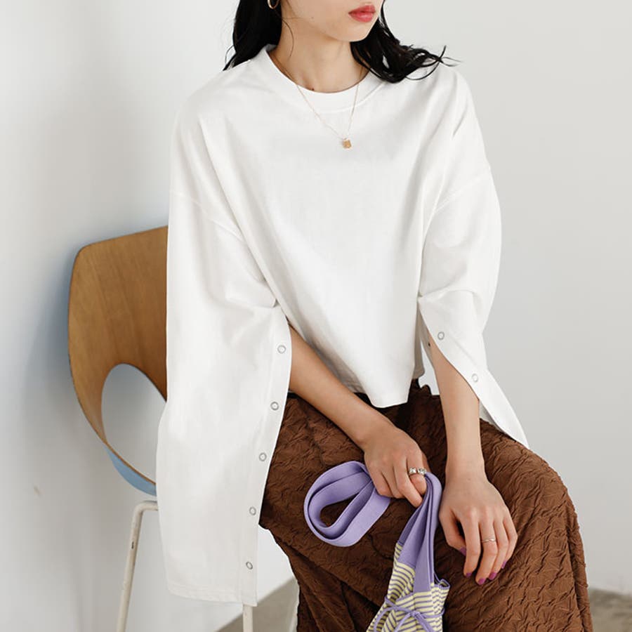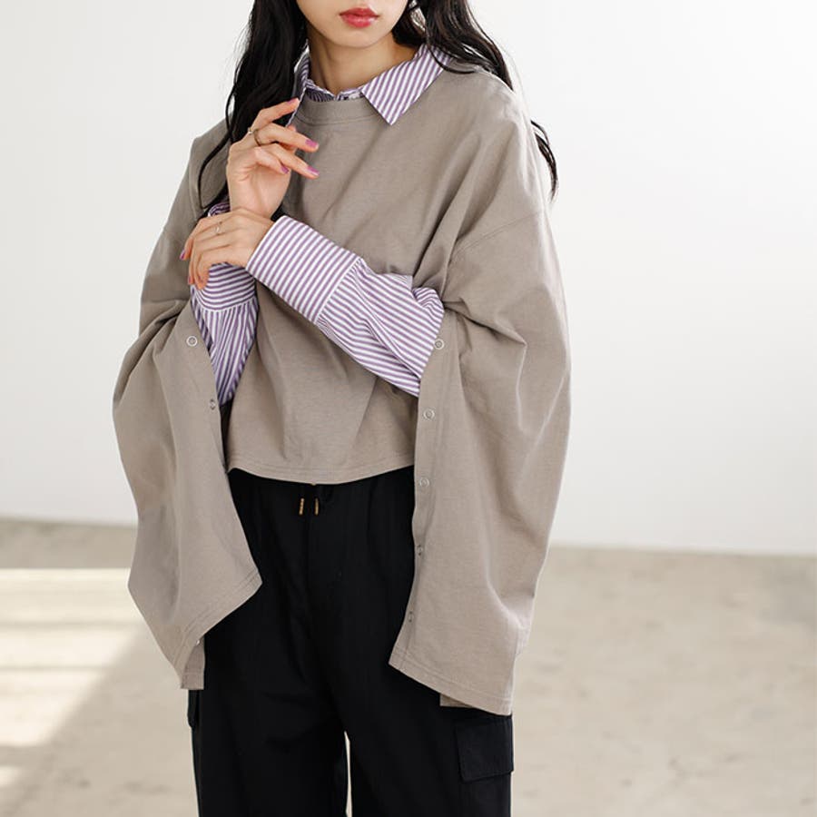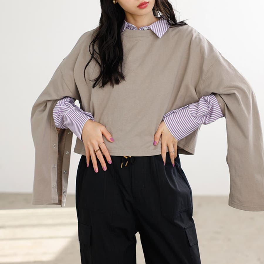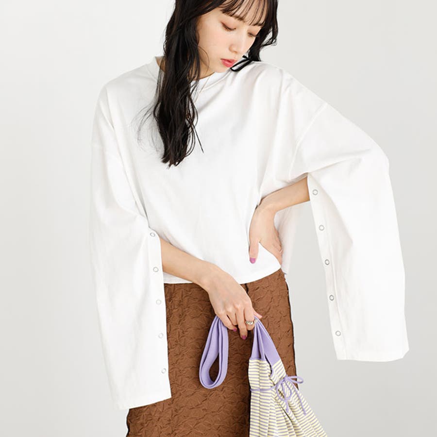 袖の内側のボタンを留め外しすることで、シルエットが変えられるプルオーバー。