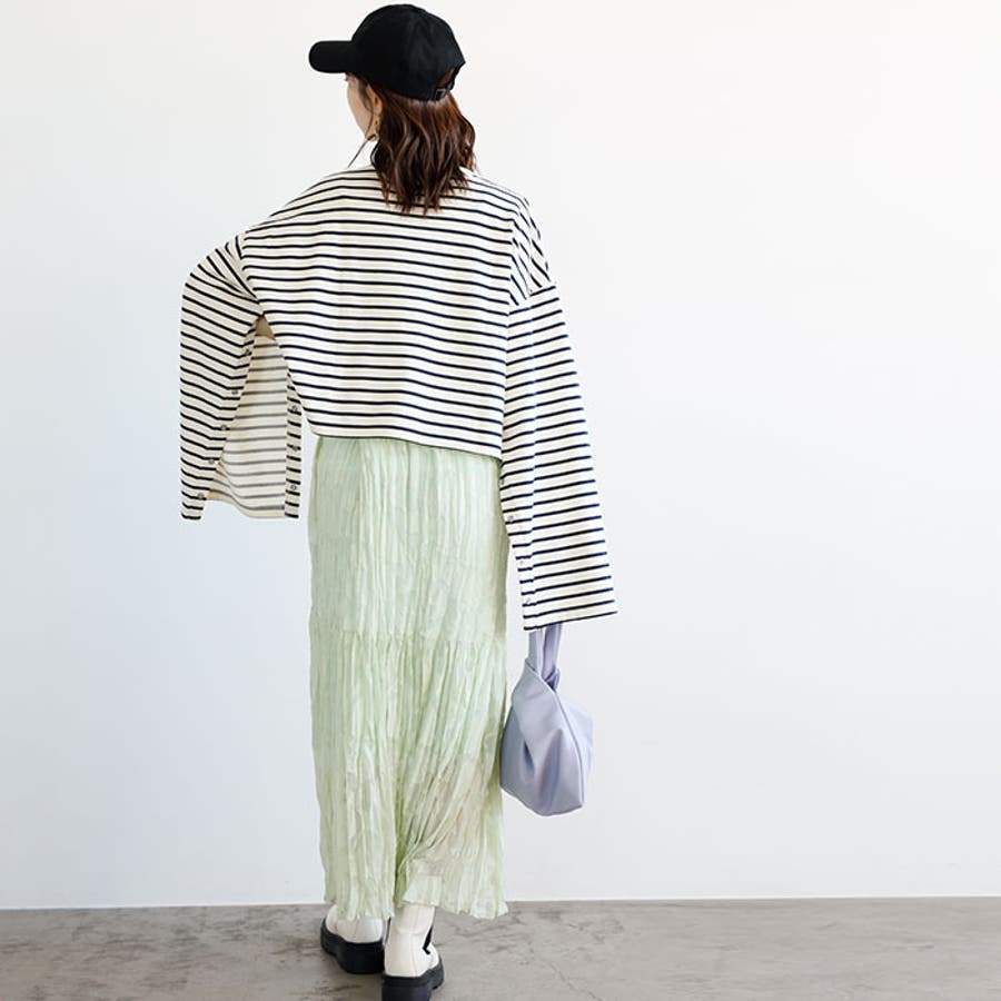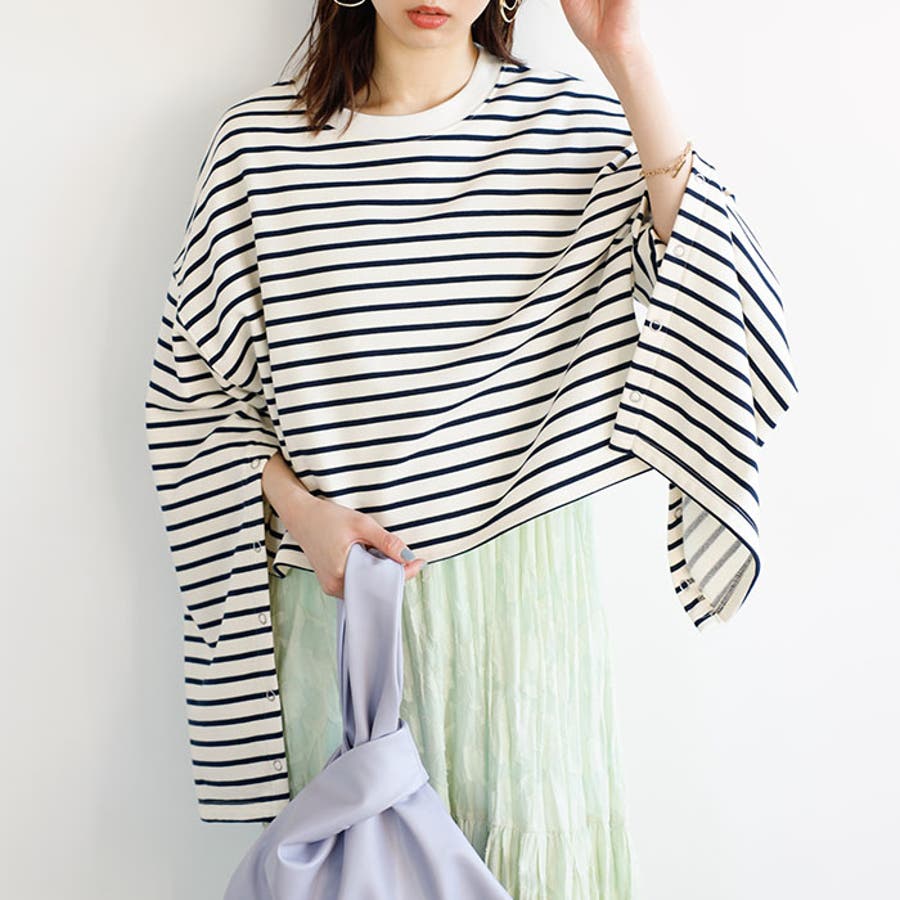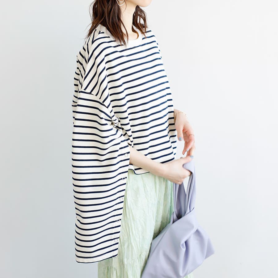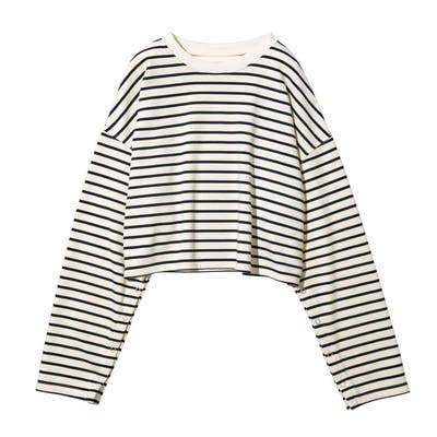 ボーダー:(本体)ポリエステル72%、綿28%(リブ部分)ポリエステル95%、ポリウレタン5%