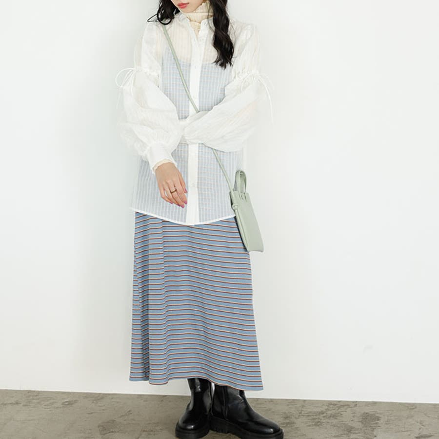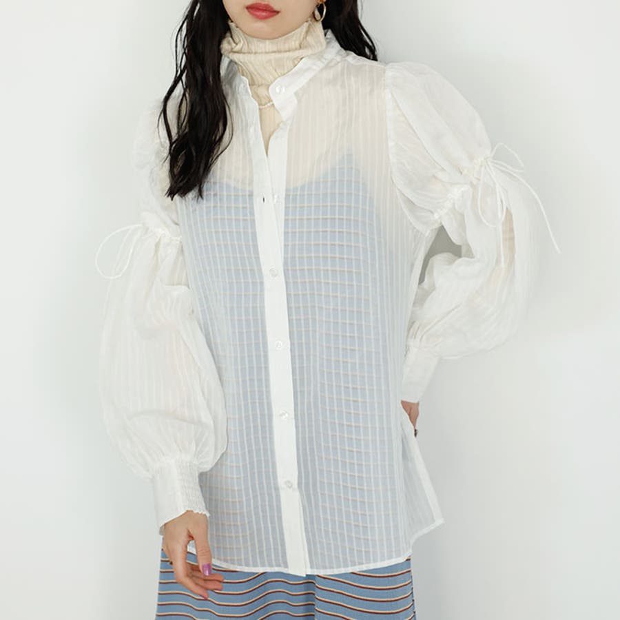 〇トレンドライクなほどよいシアー感のストライプシャツ