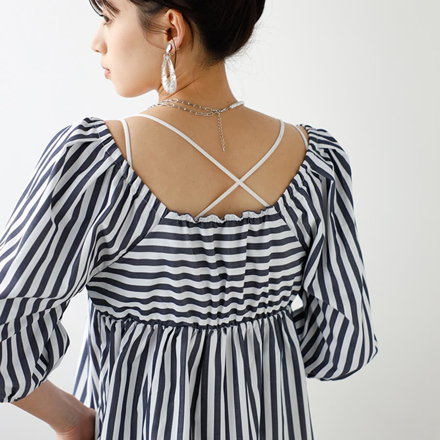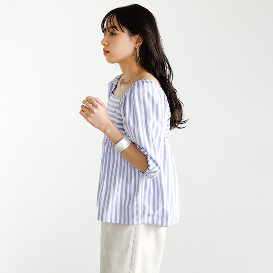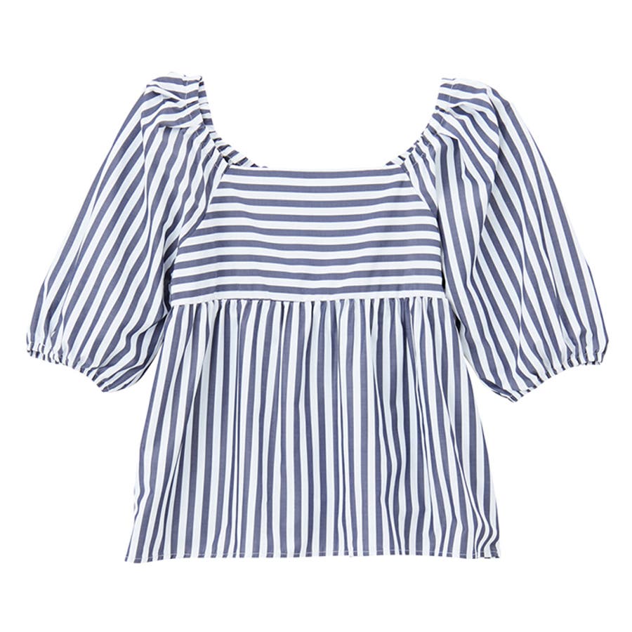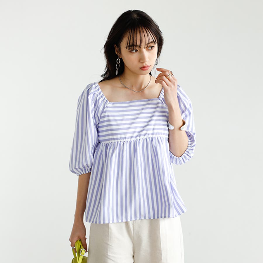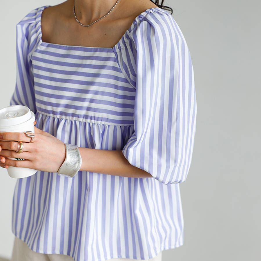 〇ジャストサイズの身頃をギャザーで切替え、すっきりと美しいシルエットに