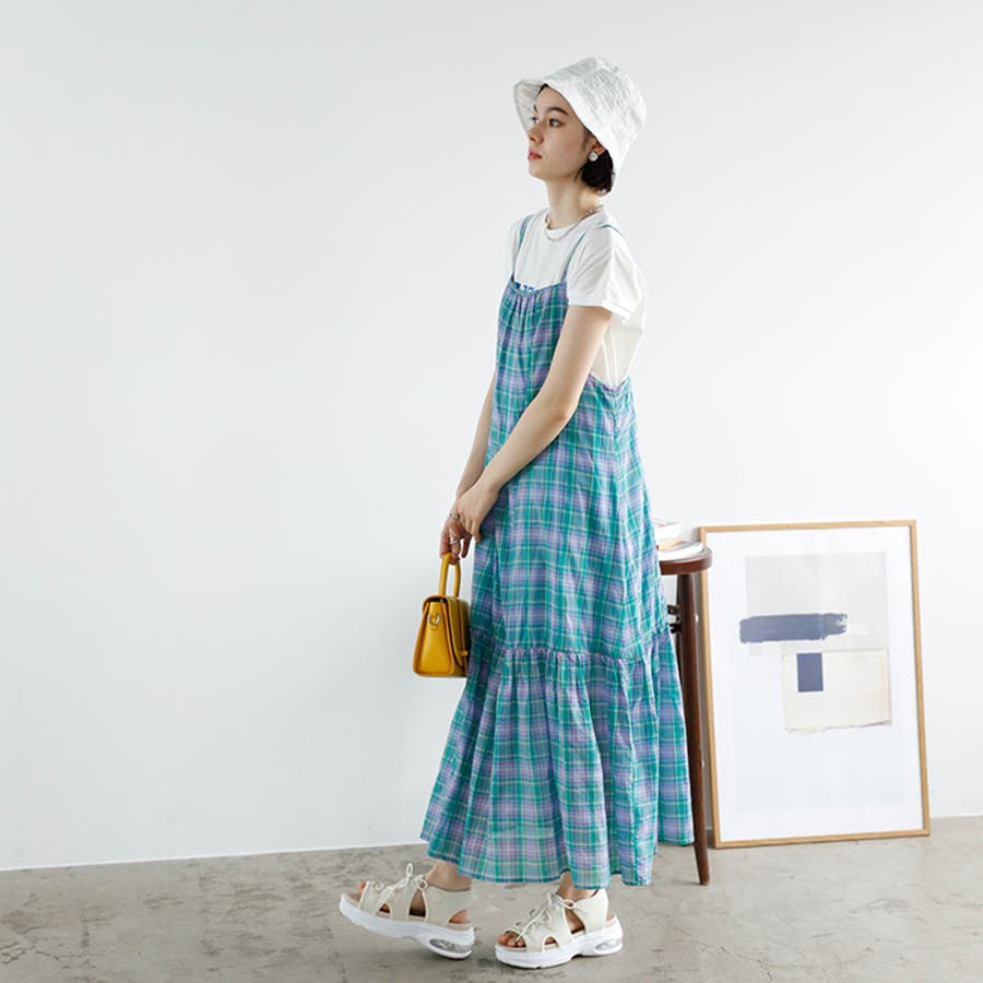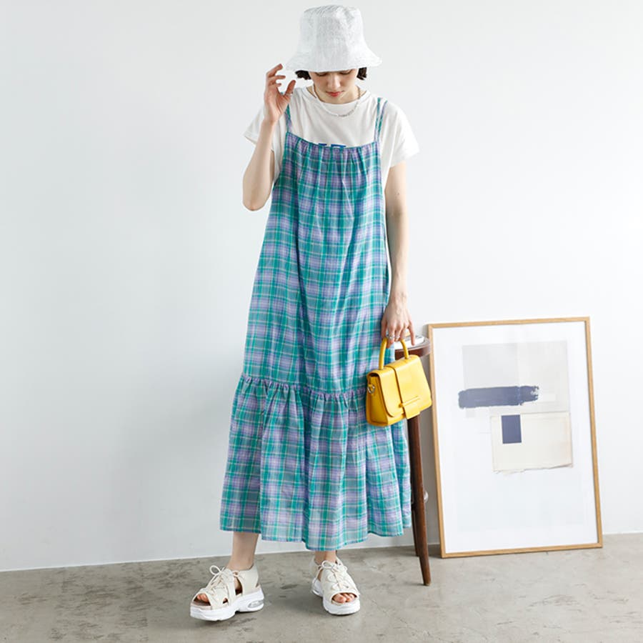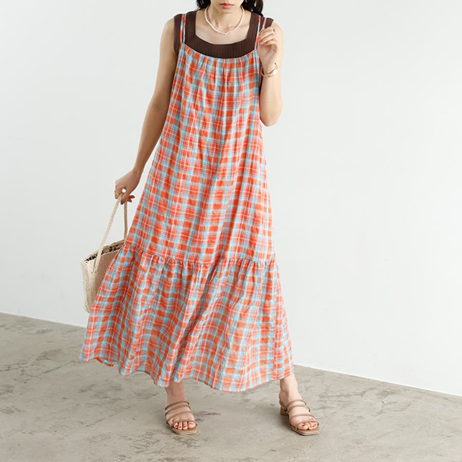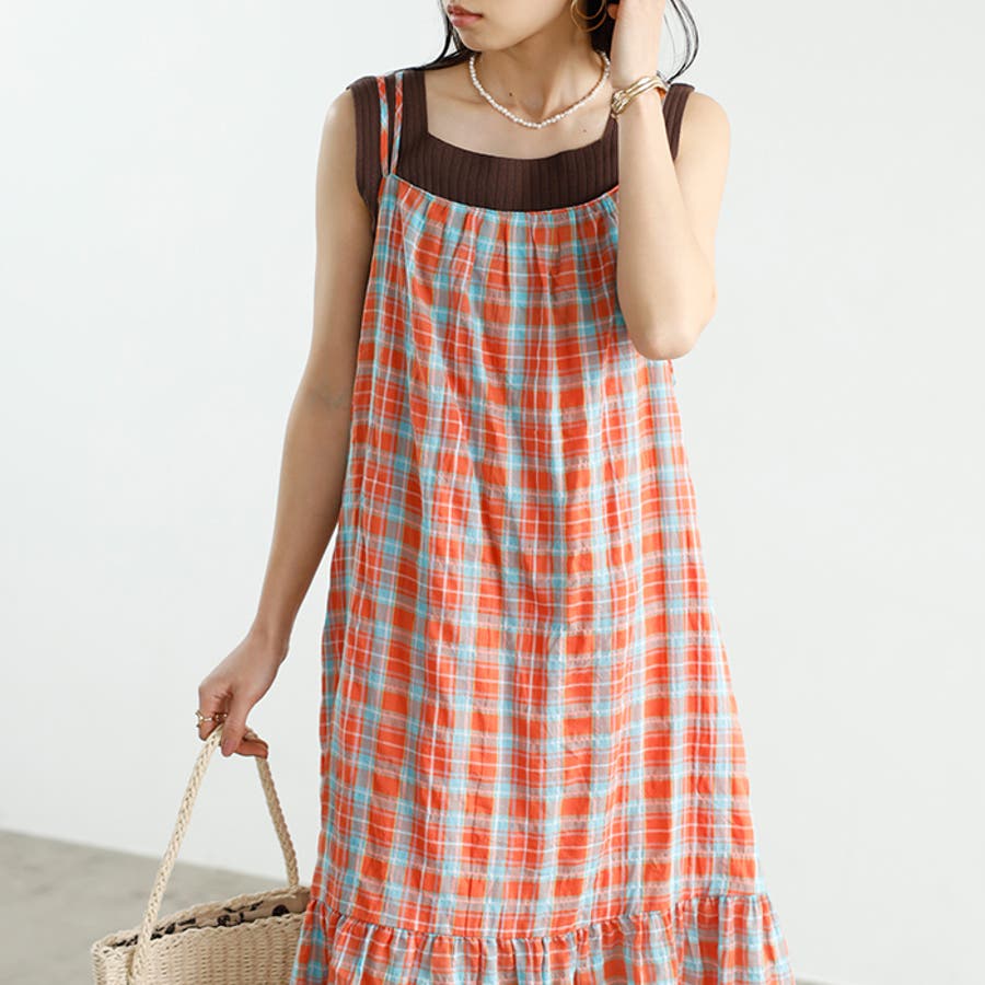 チェック柄フレアーキャミワンピース