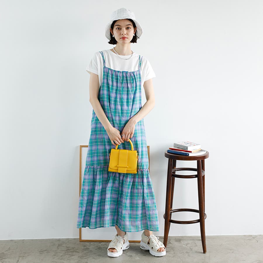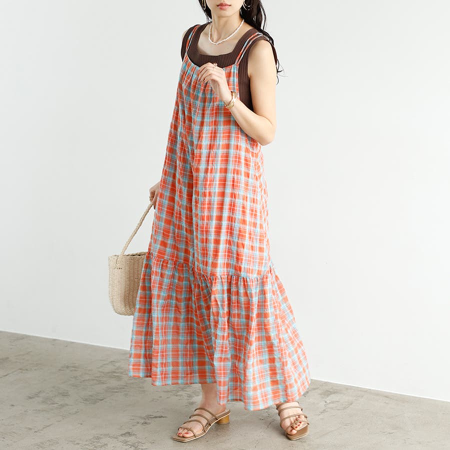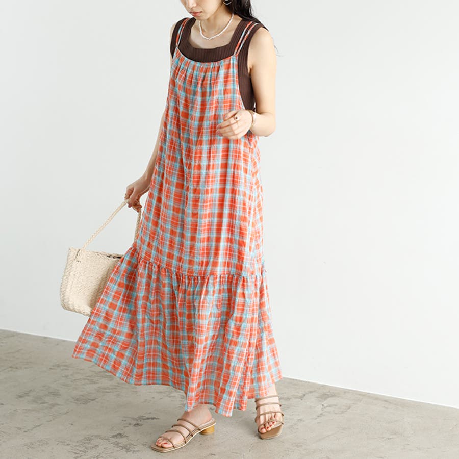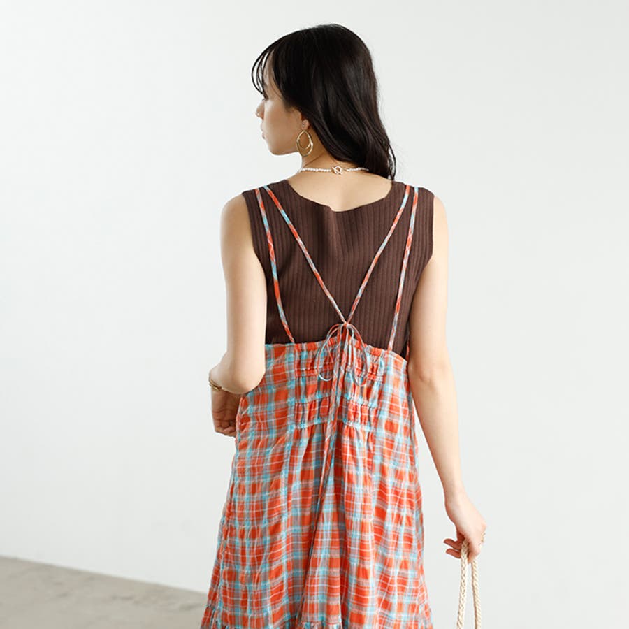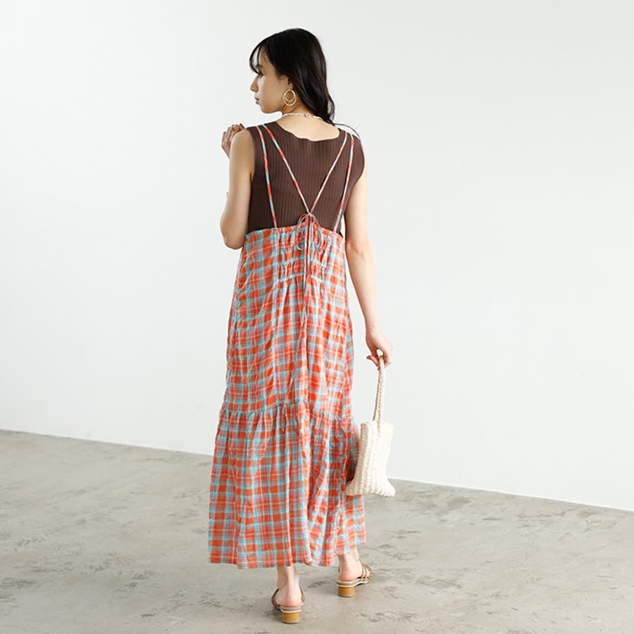 チェック柄フレアーキャミワンピース