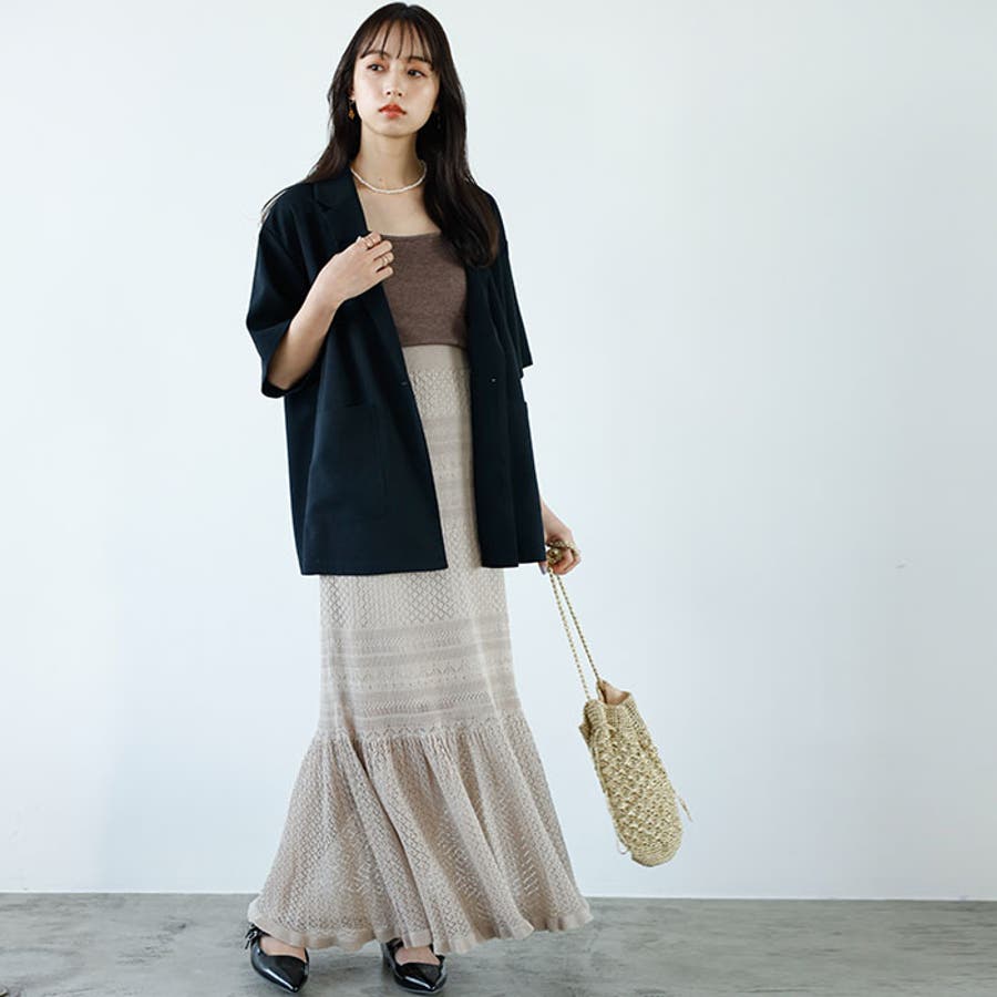 〇同素材のカーデとのセットアップコーデもおススメ!