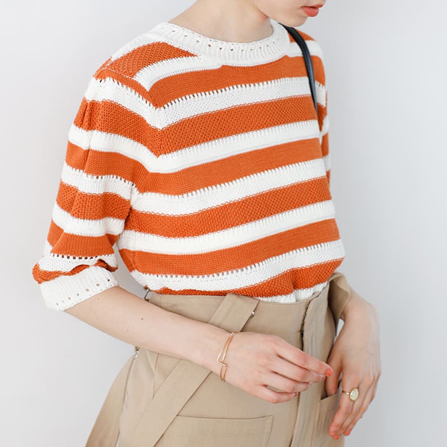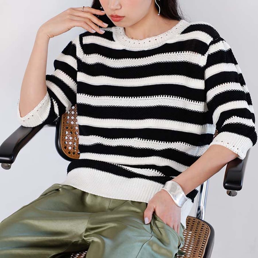 透かし編ボーダーサマーニット