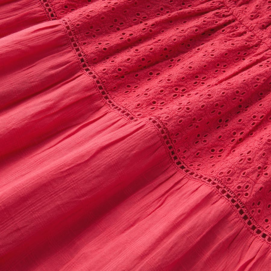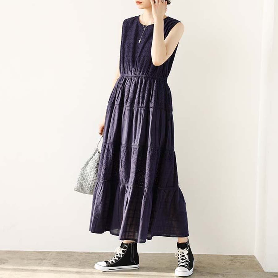 レース切替ティアードロングワンピース<夏服>