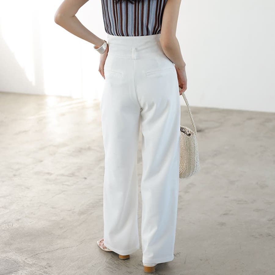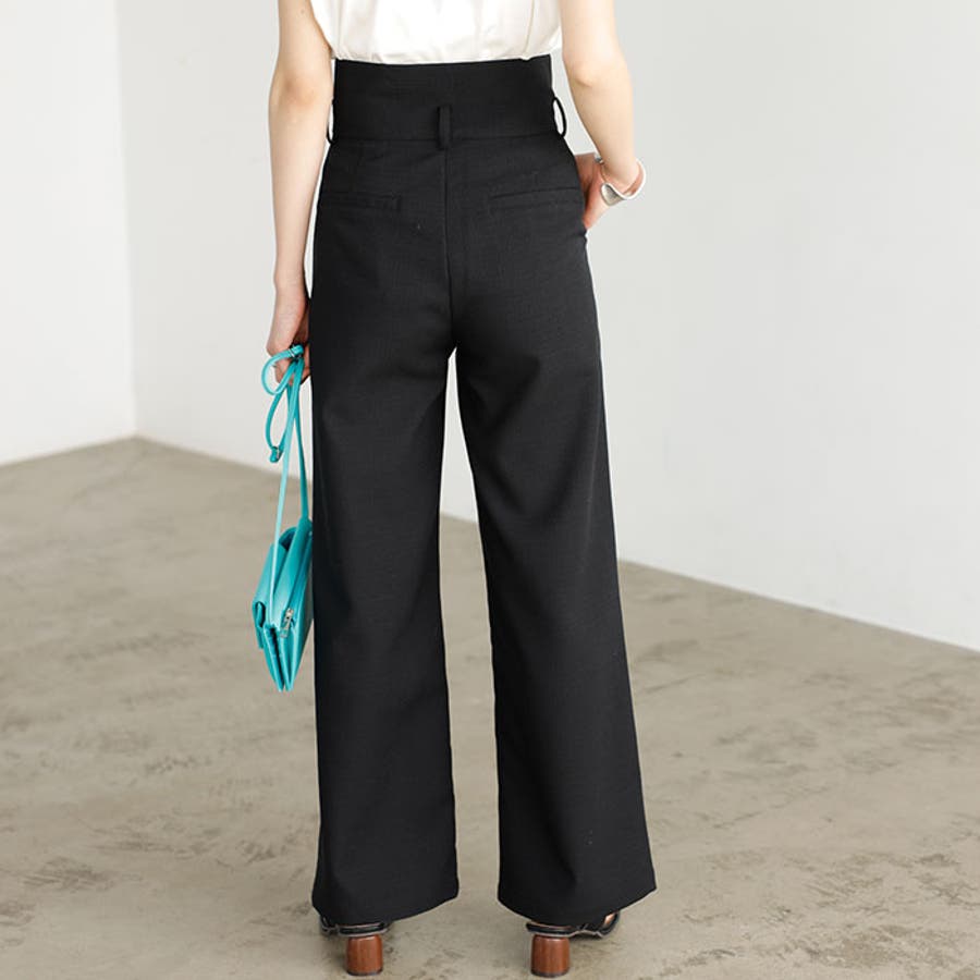 〇ハイウエストな太めベルトがウエストをすっきり、スタイルアップ見せに