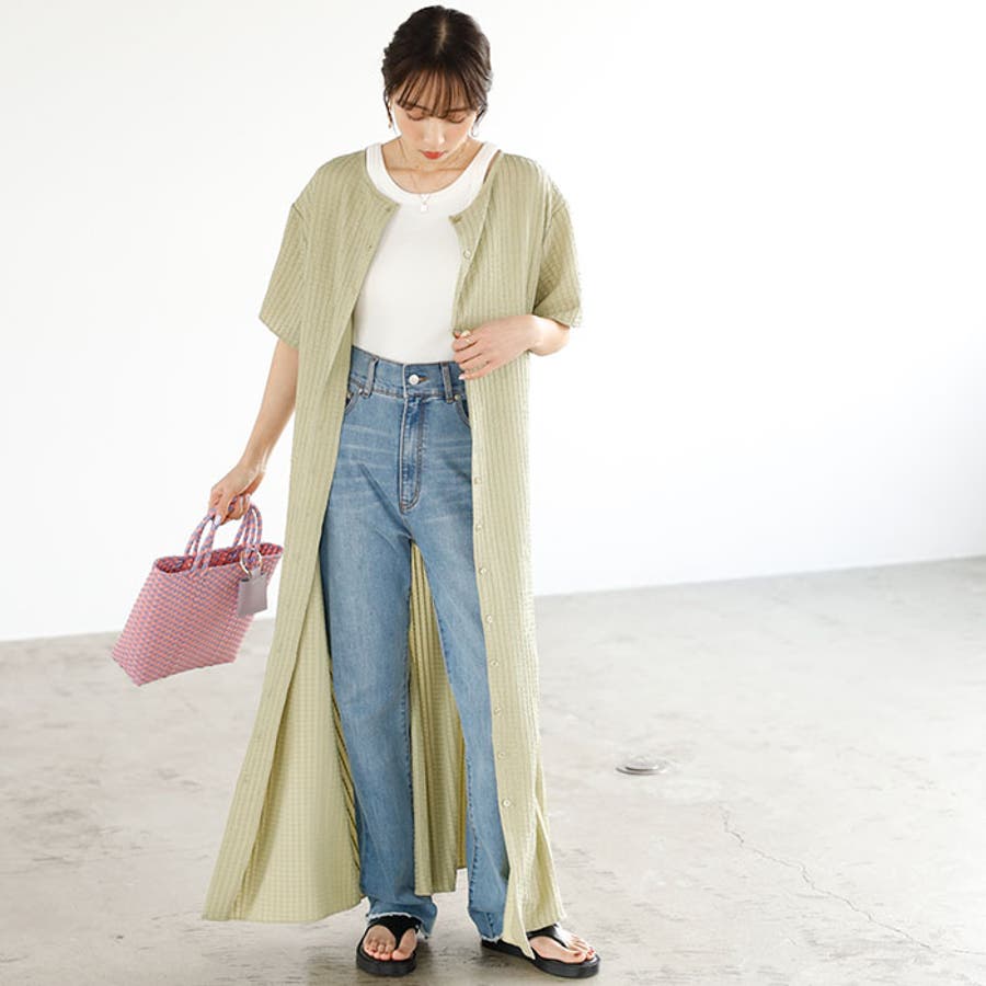キャミソールと合わせて羽織りとしても活躍するデザインなのでデニムやスラックスと合わせて着るのも◎!
