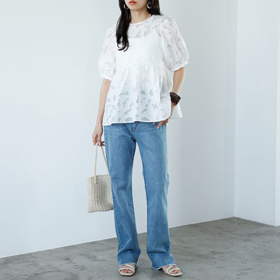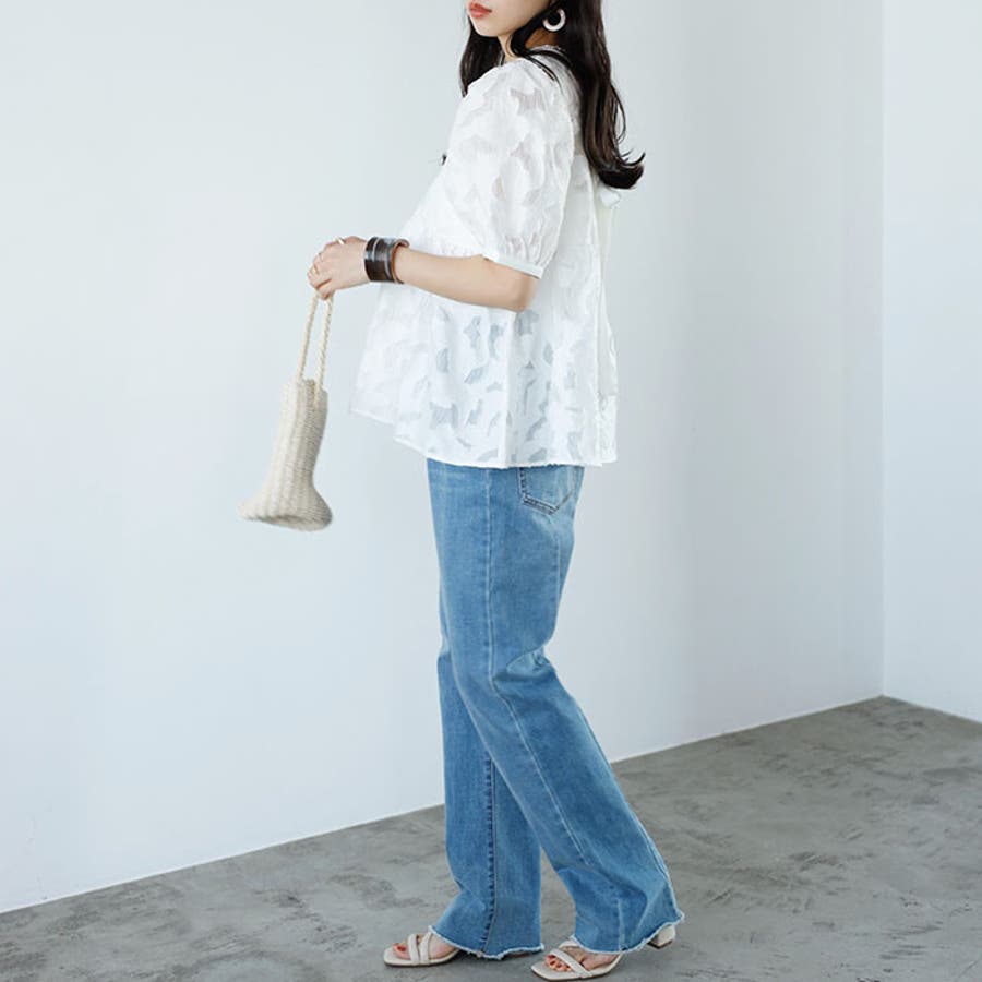 合わせるボトム次第でカジュアルにもスタイリッシュにもキマル万能ブラウス。