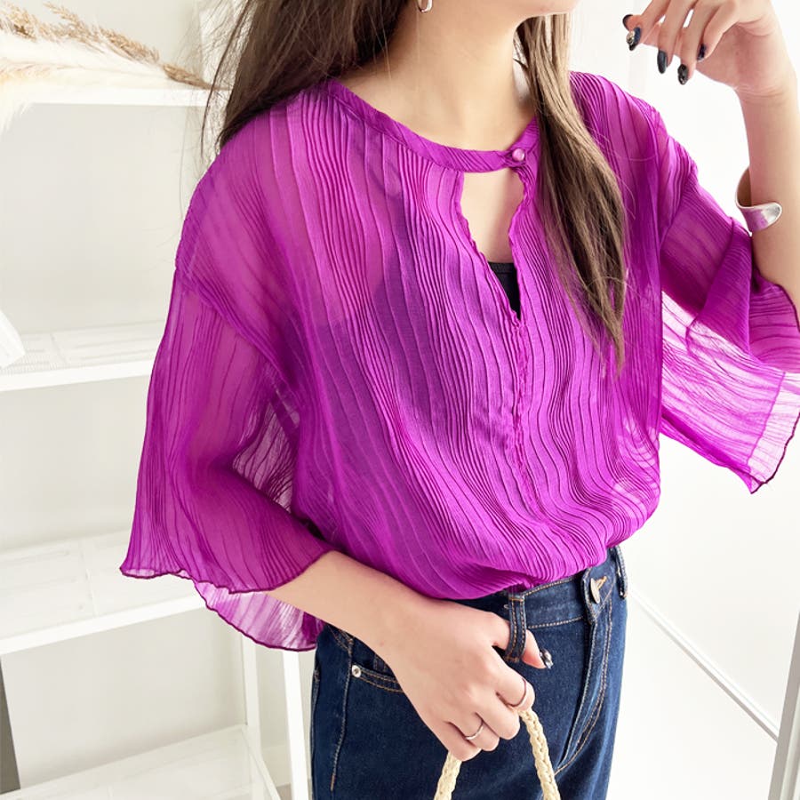 波柄のプリーツが大人っぽいシアー素材