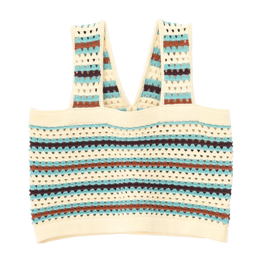 〇かぎ針編風のデザインが目を惹く夏らしいビスチェ