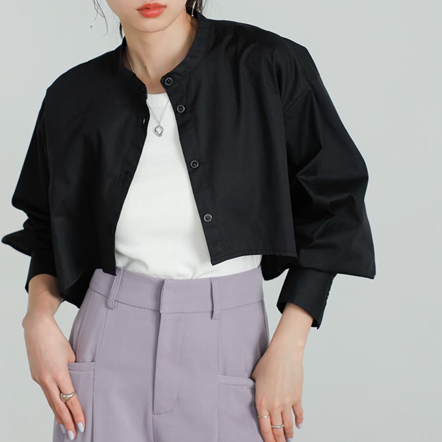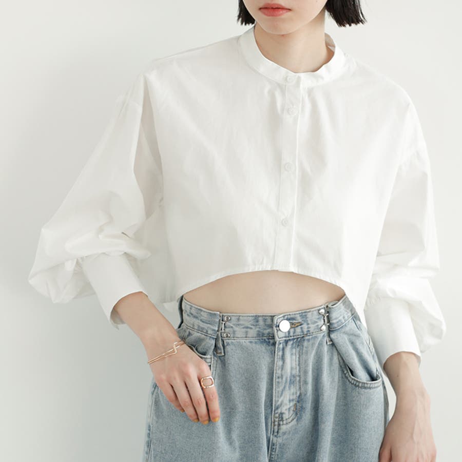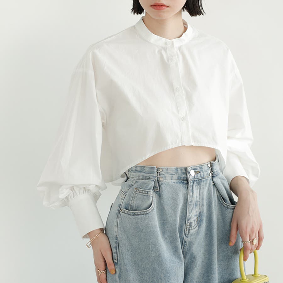 今季一枚は持っていたいクロップド丈のデザインブラウス。
