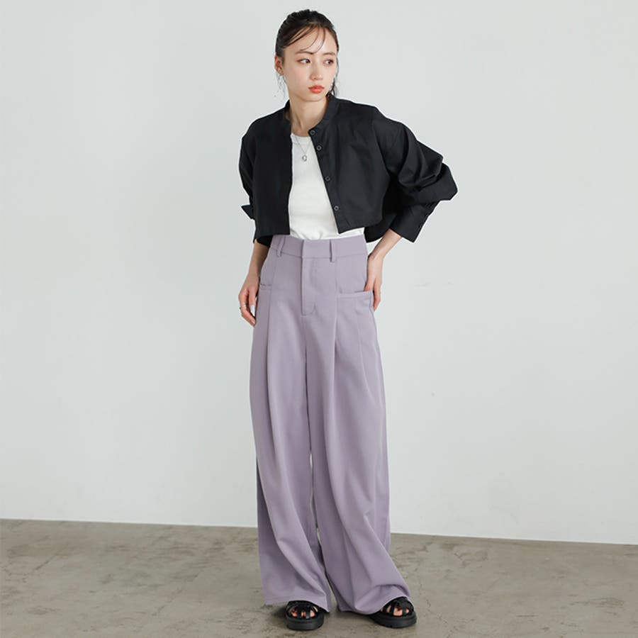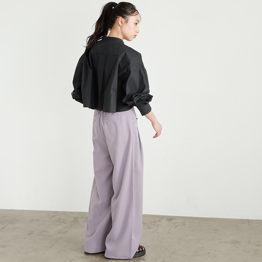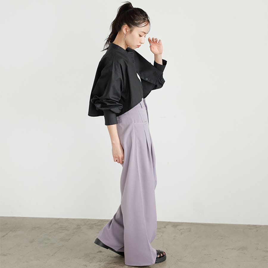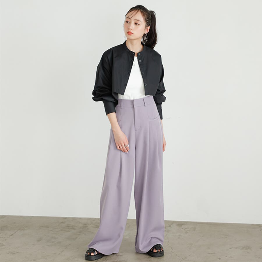 テーパードパンツやワイドスラックスなどと合わせたキレイめスタイルなら、