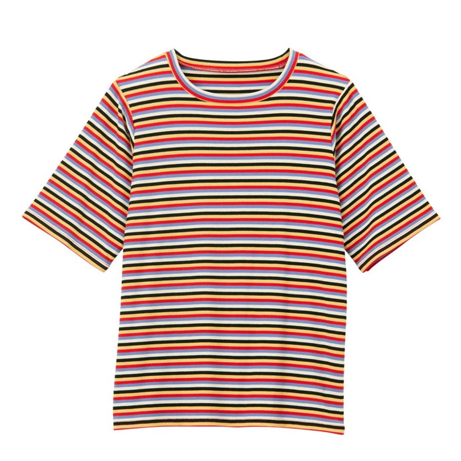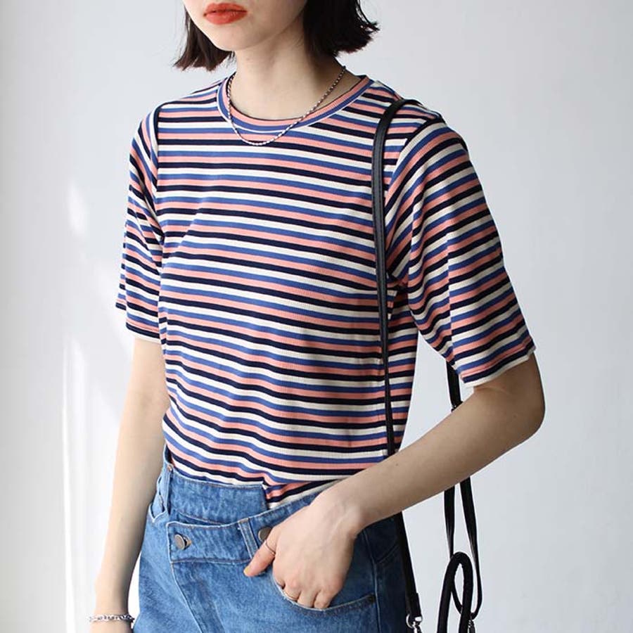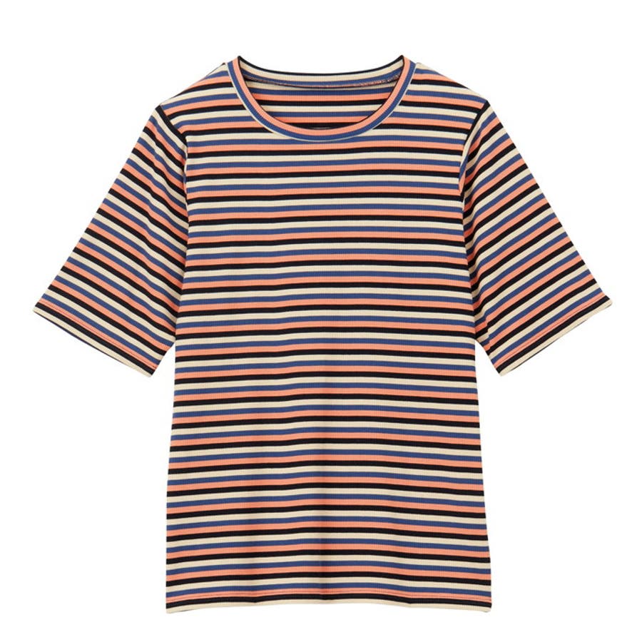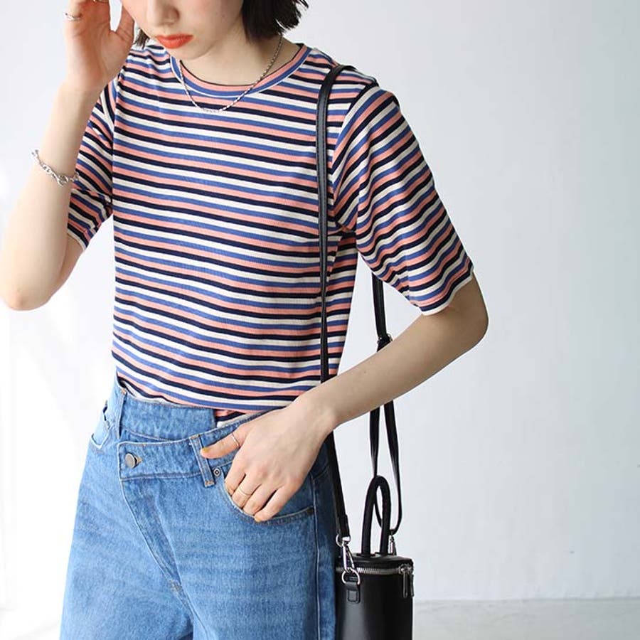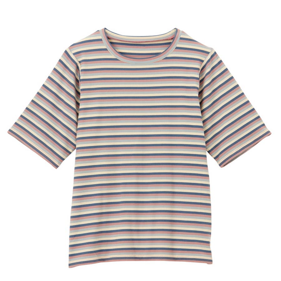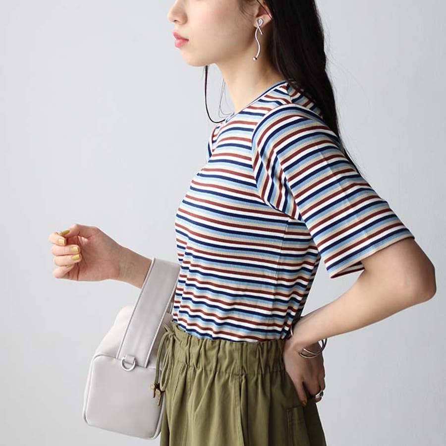 マルチボーダー5分袖リブカットソー