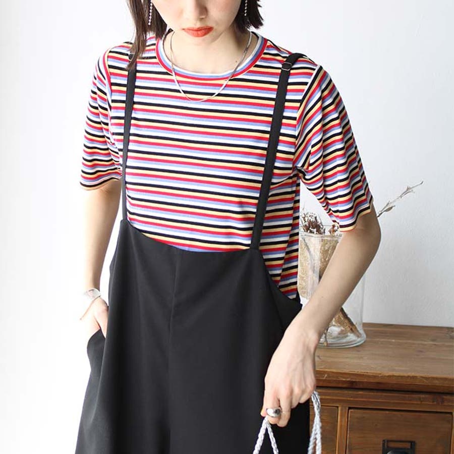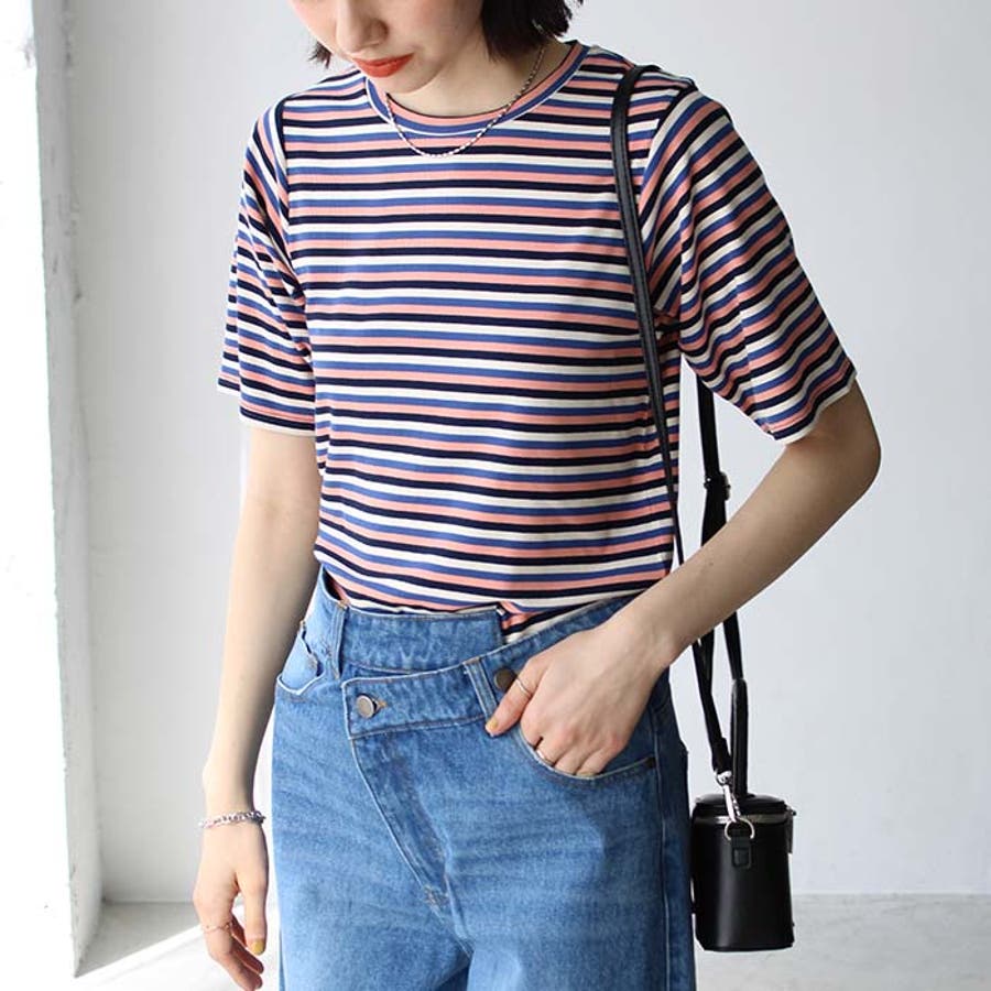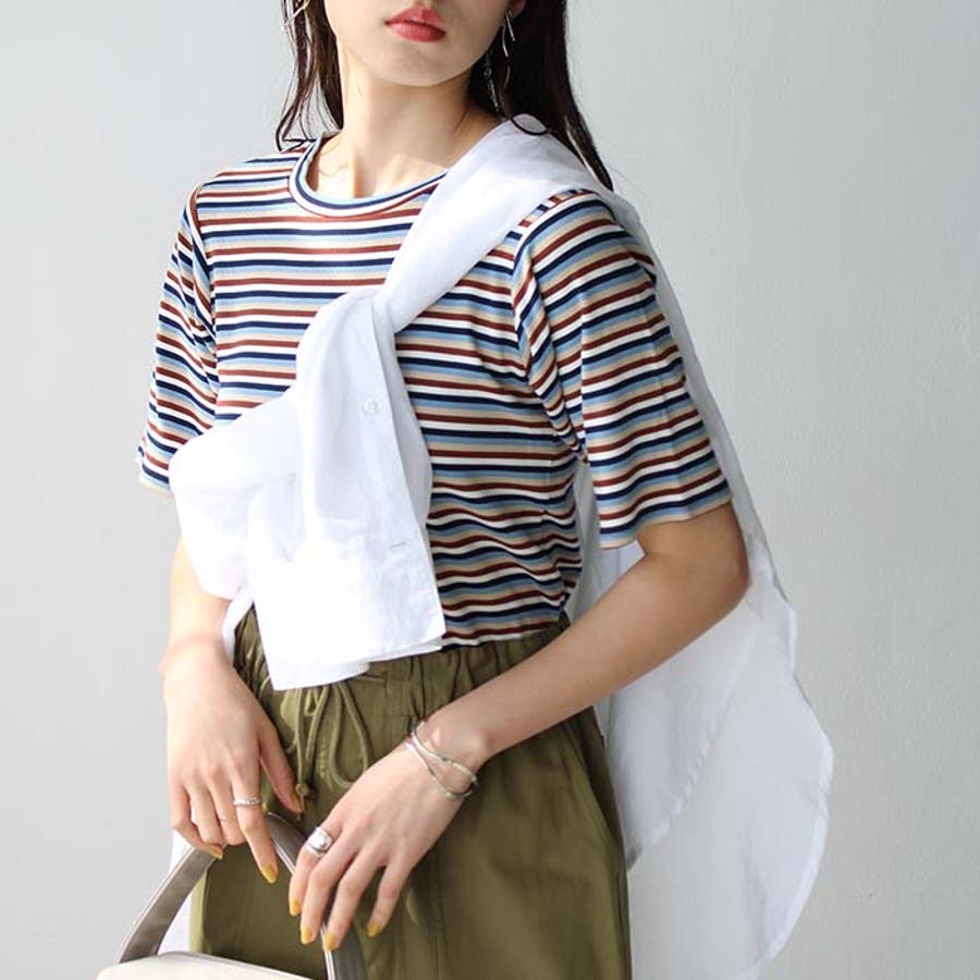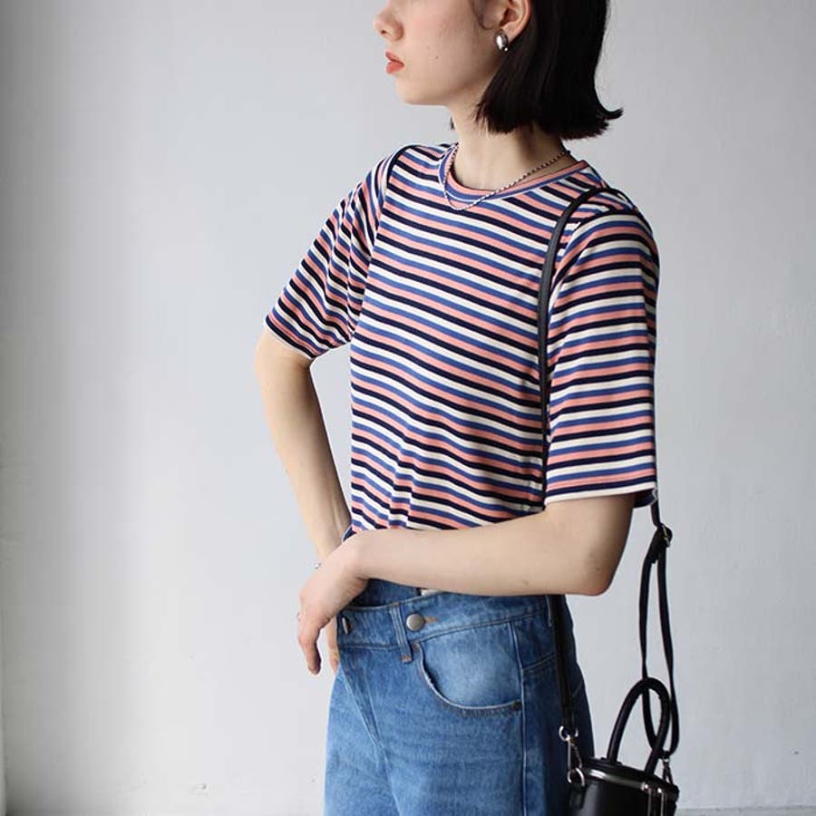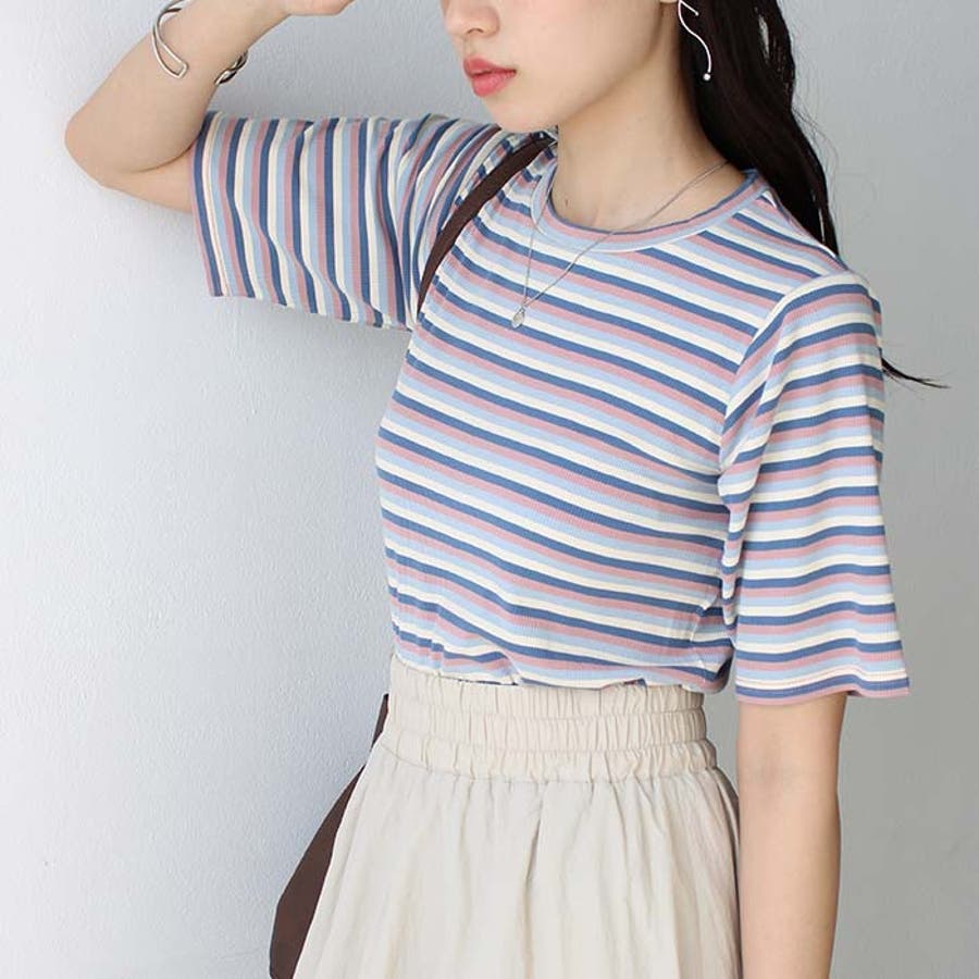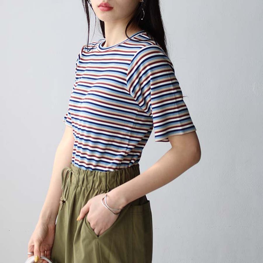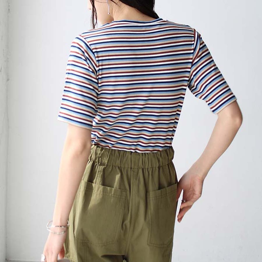 マルチボーダー5分袖リブカットソー